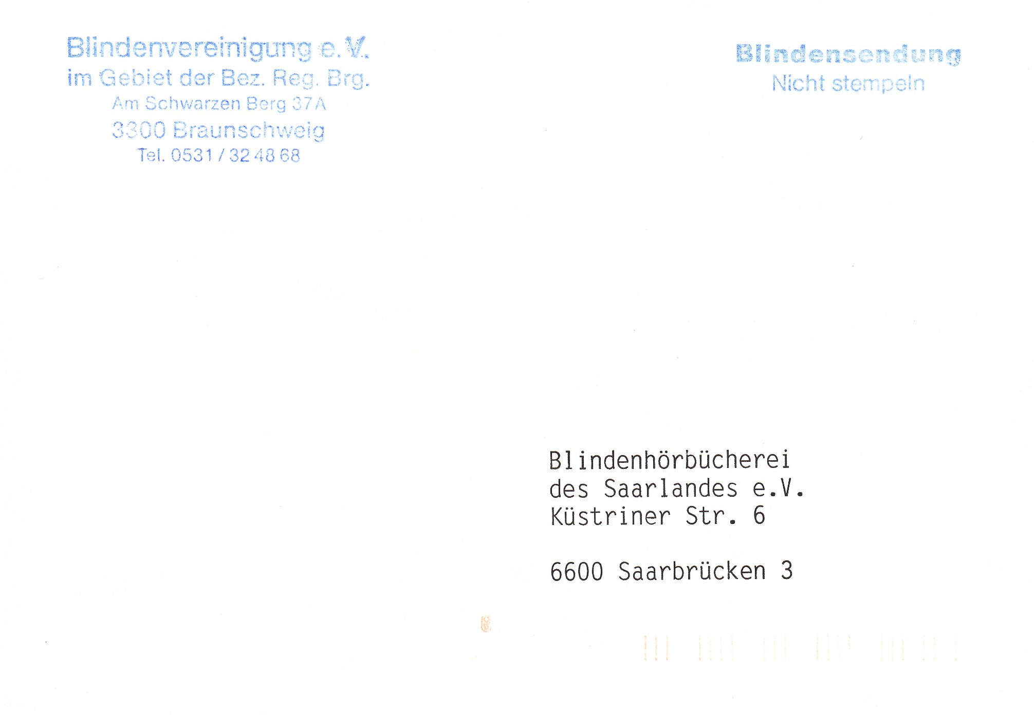 Hier noch eine portofreie Blindensendung: