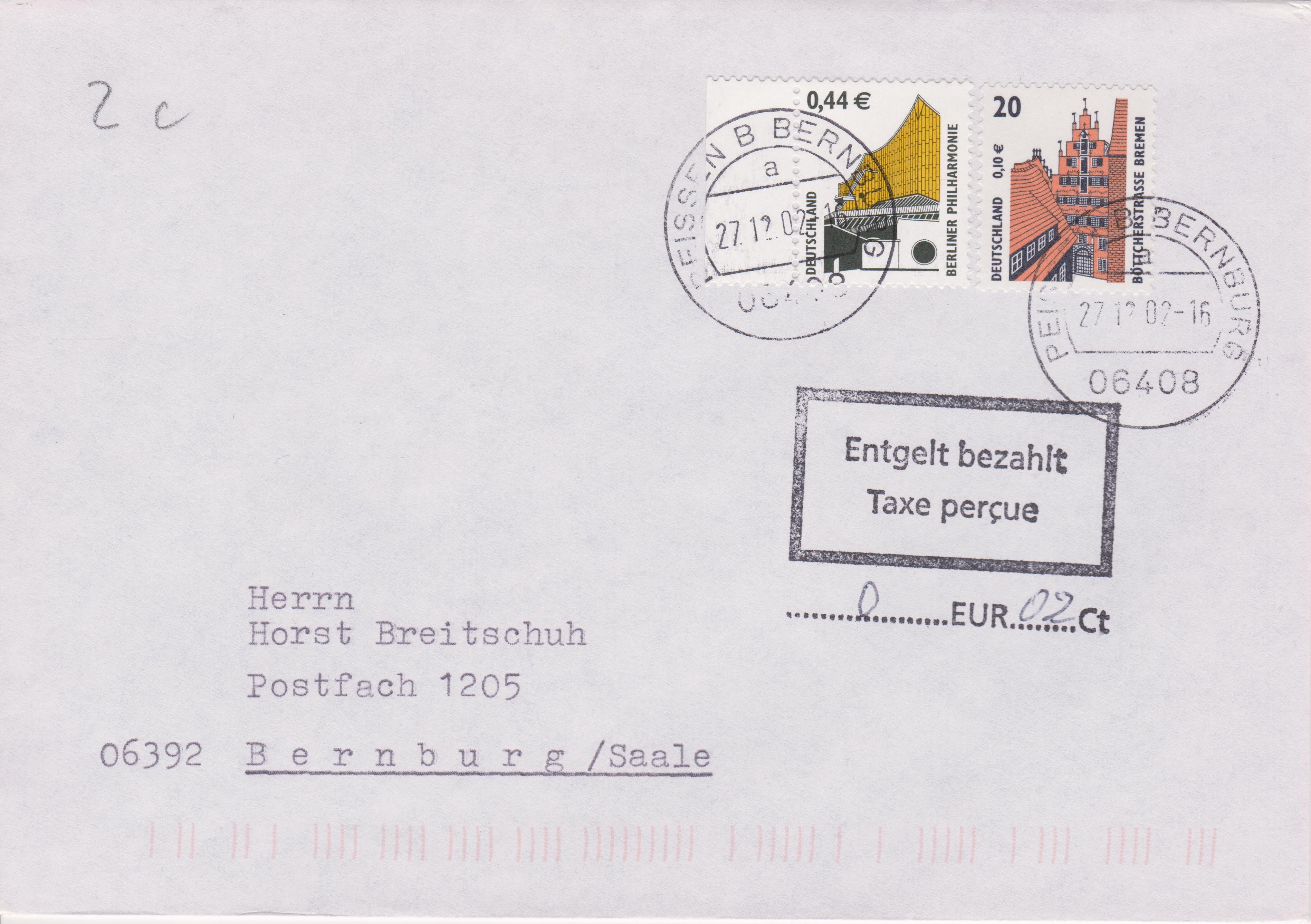 Am 27.12.2002 galt für Standardbriefe ein Porto von 0,56 €!