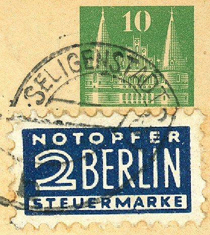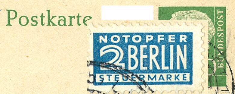 Alle Postsendungen (Drucksachen, Postkarten, Briefe, Päckchen und Pakete) mussten in der amerikanisch-britischen Zone ab 01.12.1948 zusätzlich mit einer Zwangszuschlagsmarke "NOTOPFER BERLIN" versehen sein.