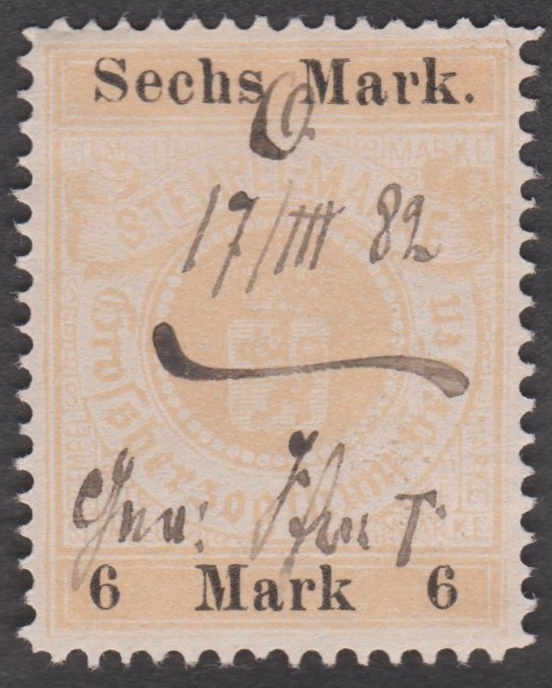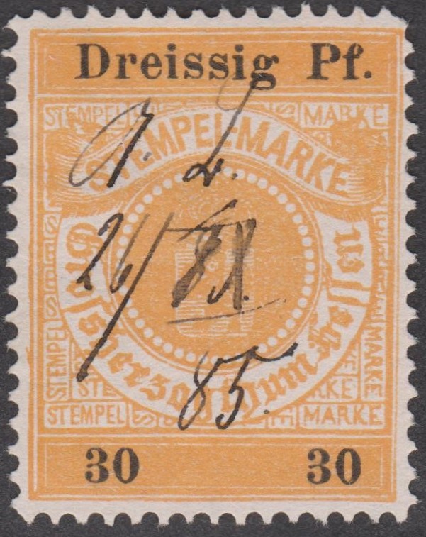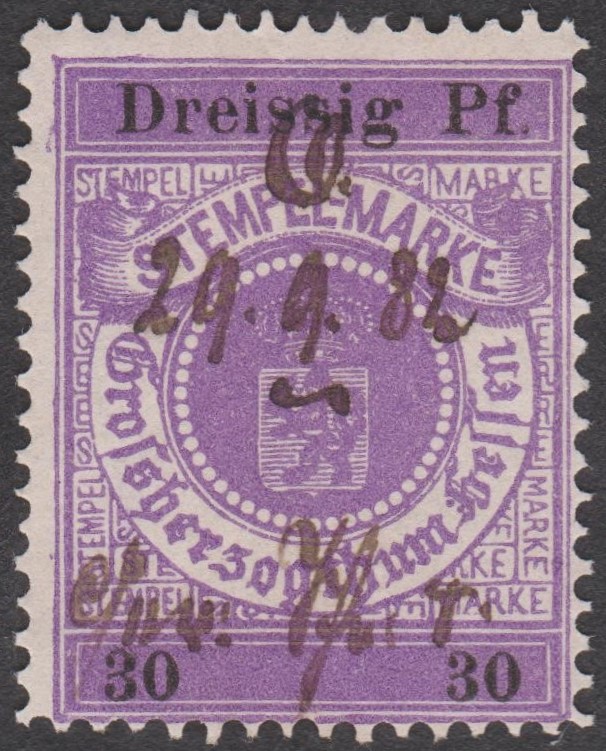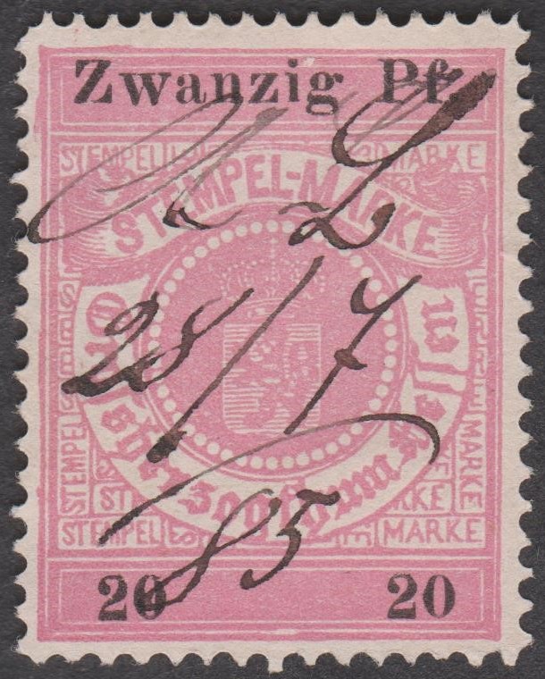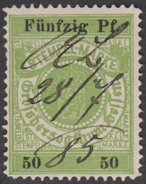 Stempelmarke 5 Goldmark GROSSHERZOGTUM HESSEN mit Aufdruck "VOLKSSTAAT HESSEN":