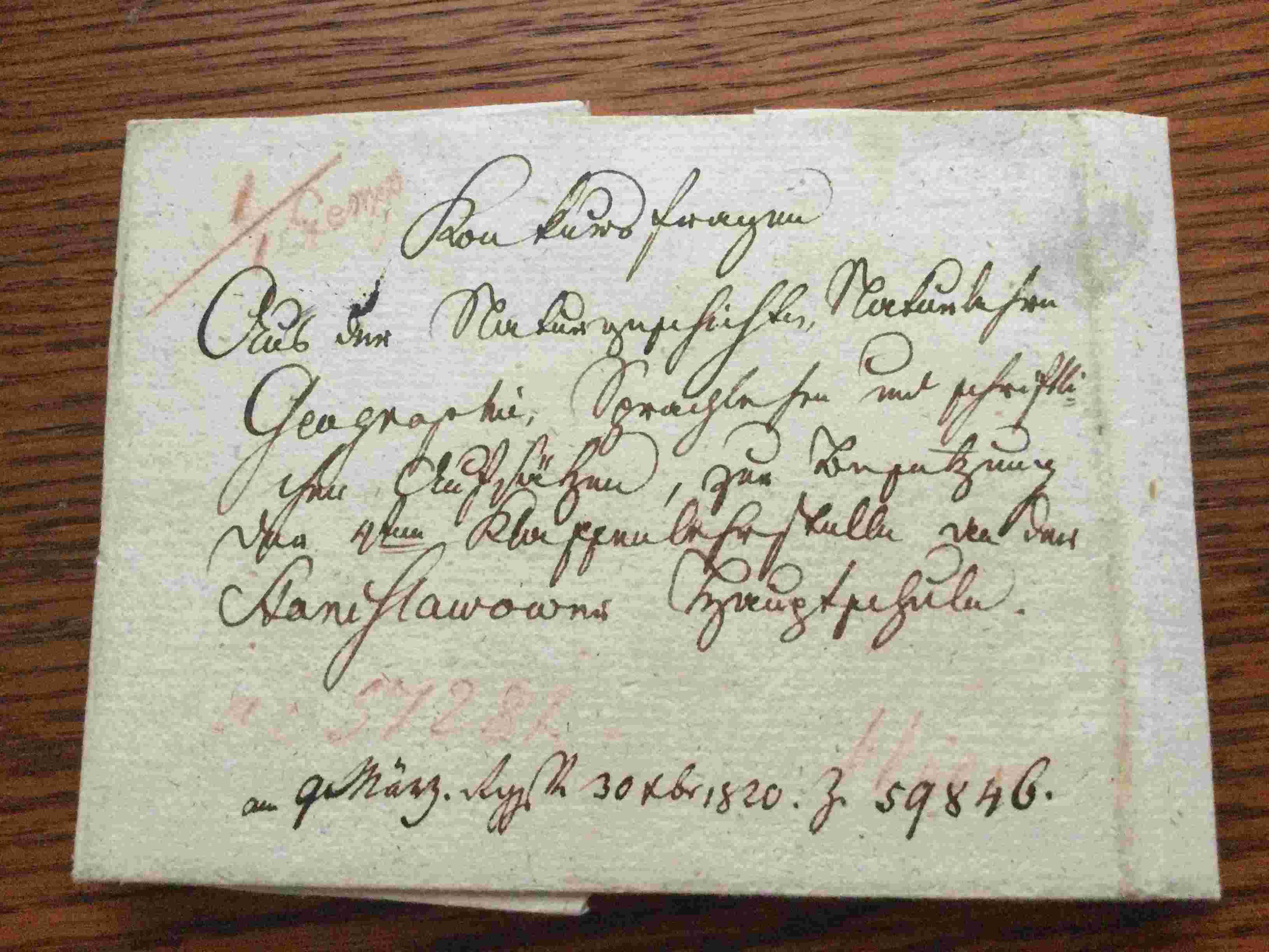 Der Brief stammt vermutlich aus dem Jahre 1820?