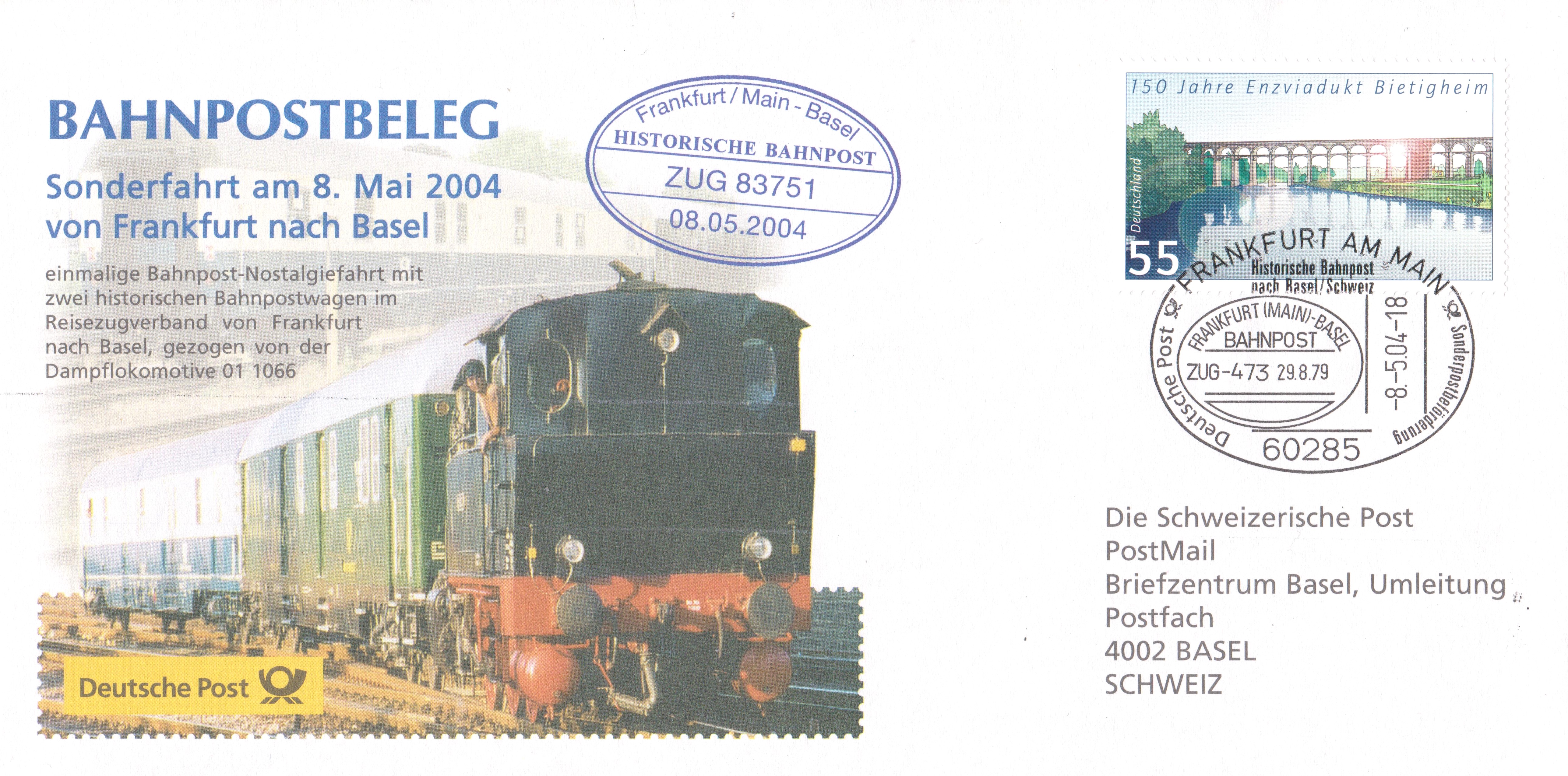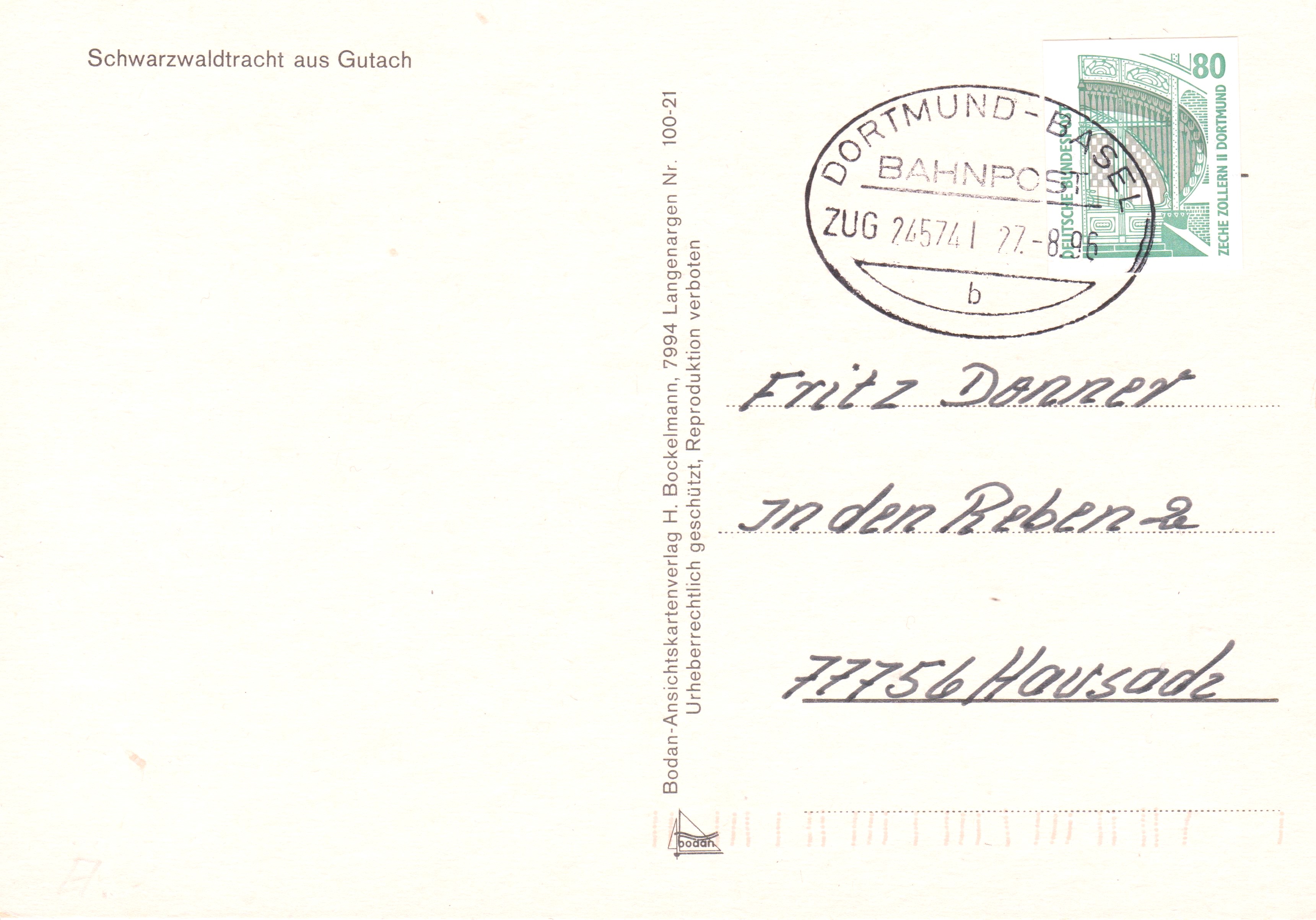Diese Postkarten wurden am 27.08.1996 im ZUG 24574 DORTMUND - BASEL aufgegeben: