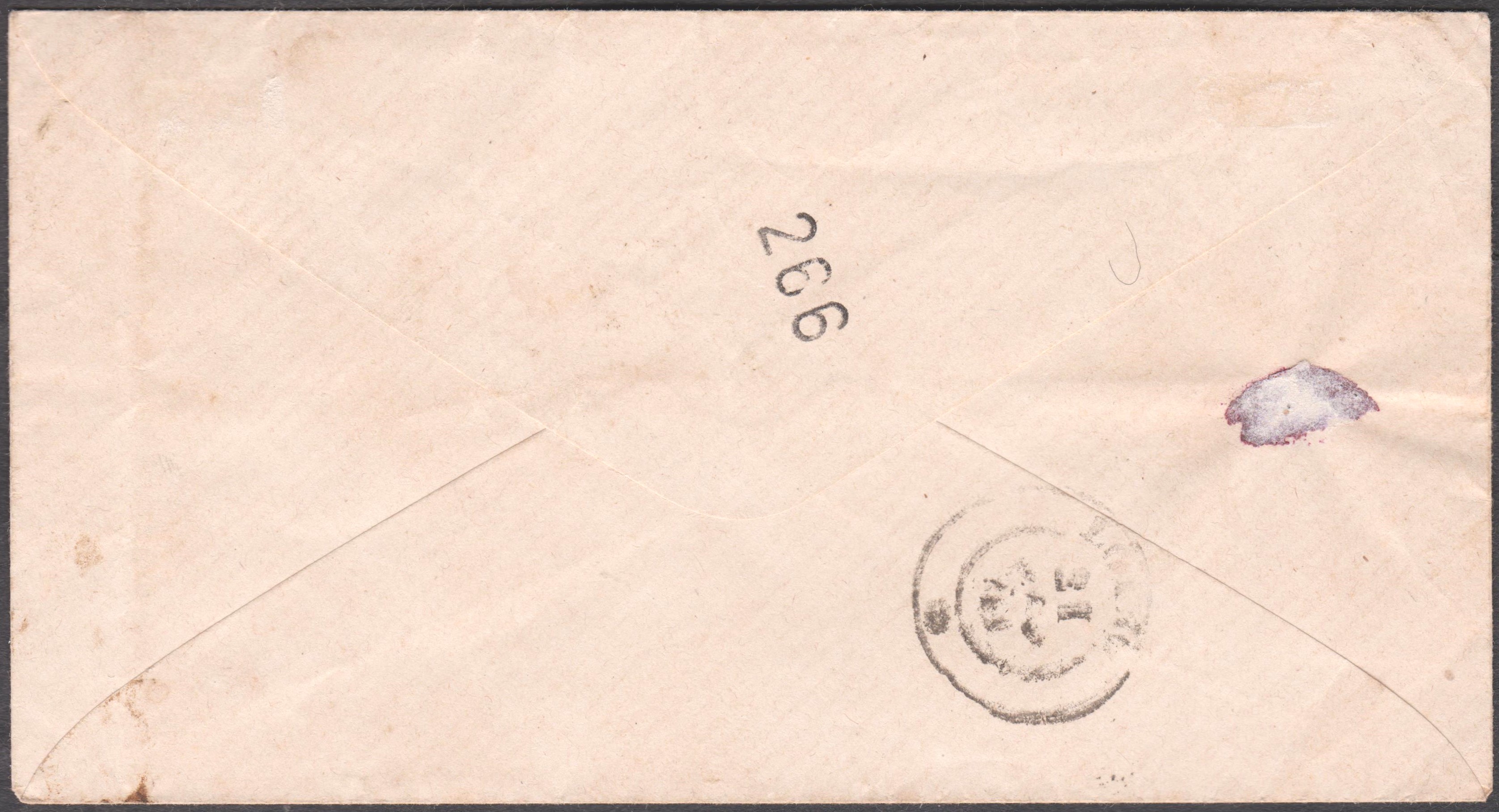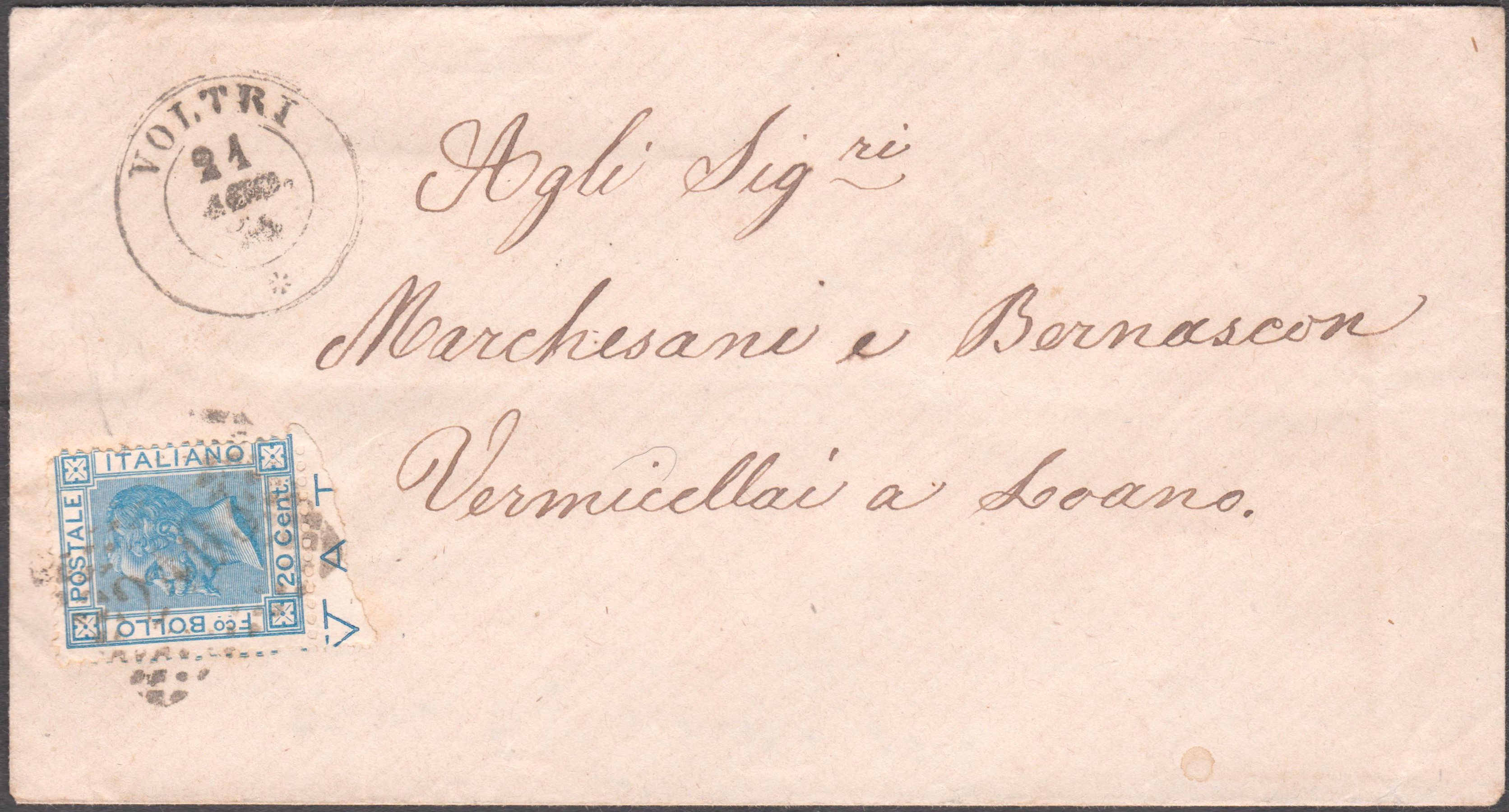 Zustellerstempel "266" rückseitig auf Brief, aufgegeben in VOLTRI: