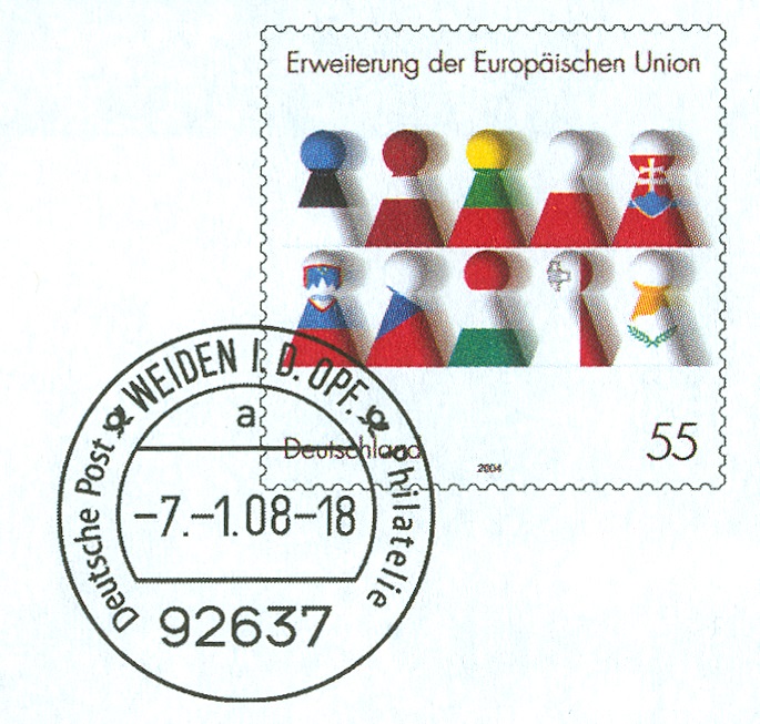 Als Faltkarte (F2) wird die Weidener Ganzsache EA F 204 mit dem Vorausentwertungsdatum " -5.3.07 - 18" katalogisiert. Und ist mit ihrer Vorderseite im 2014er Ganzsachen-Katalog farbig abgebildet.