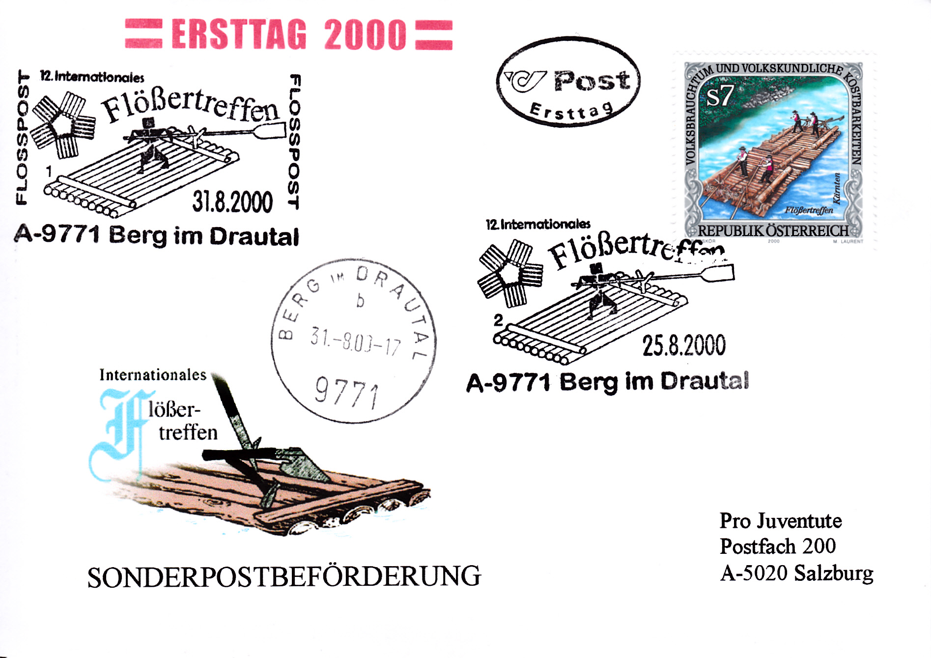 Die Frankatur wurde in 6787 GARGELLEN mit einem Sonderstempel entwertet, hier mit der Kennzimmer "1":
