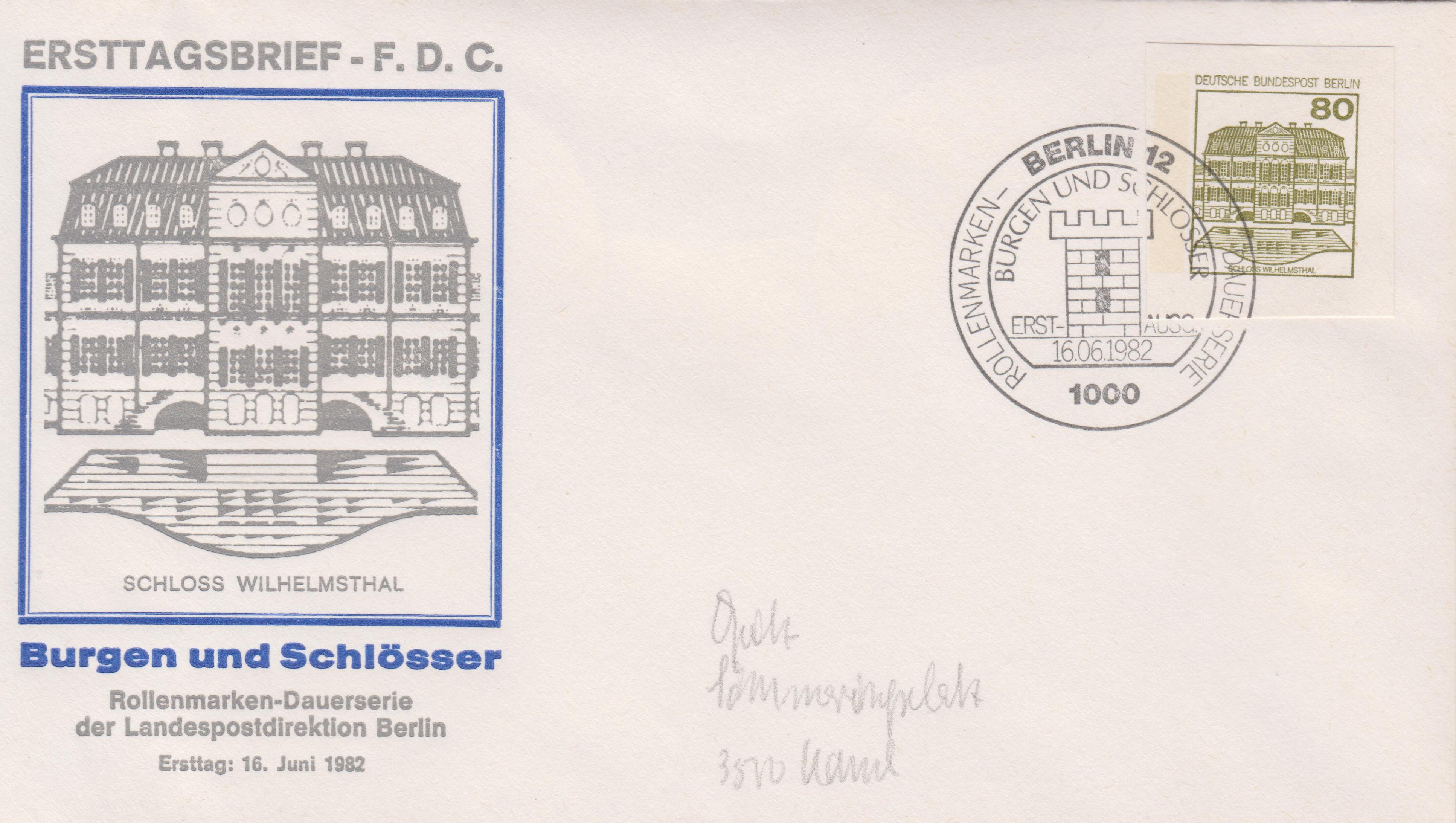 Inlandsbrief, Portostufe 80 Pf, frankiert mit einem Ausschnitt einer Ganzsache mit Wertzeicheneindruck Berlin MiNr. 674 "Schloss Wilhelmsthal", entwertet per ESST "1000 BERLIN 12":