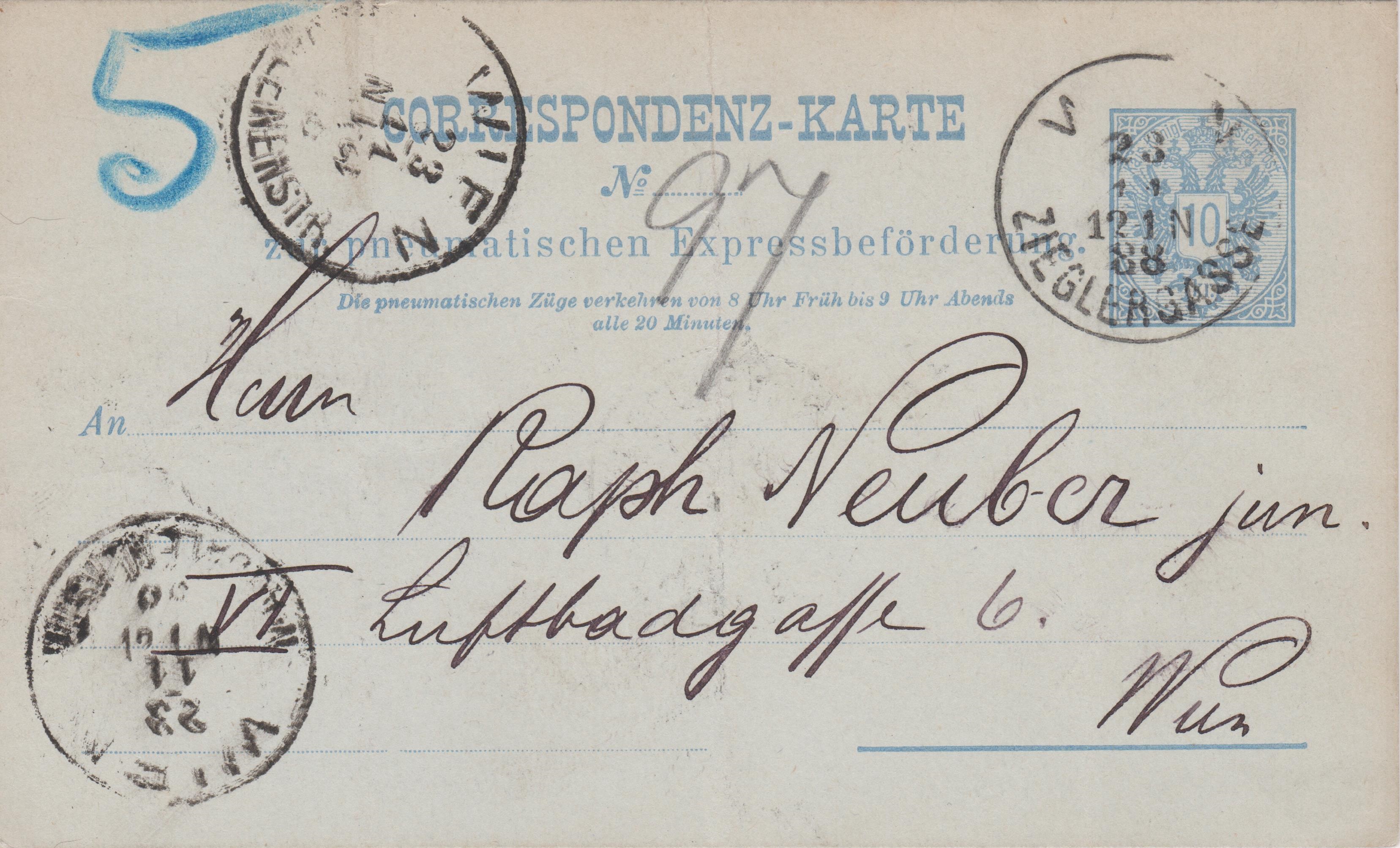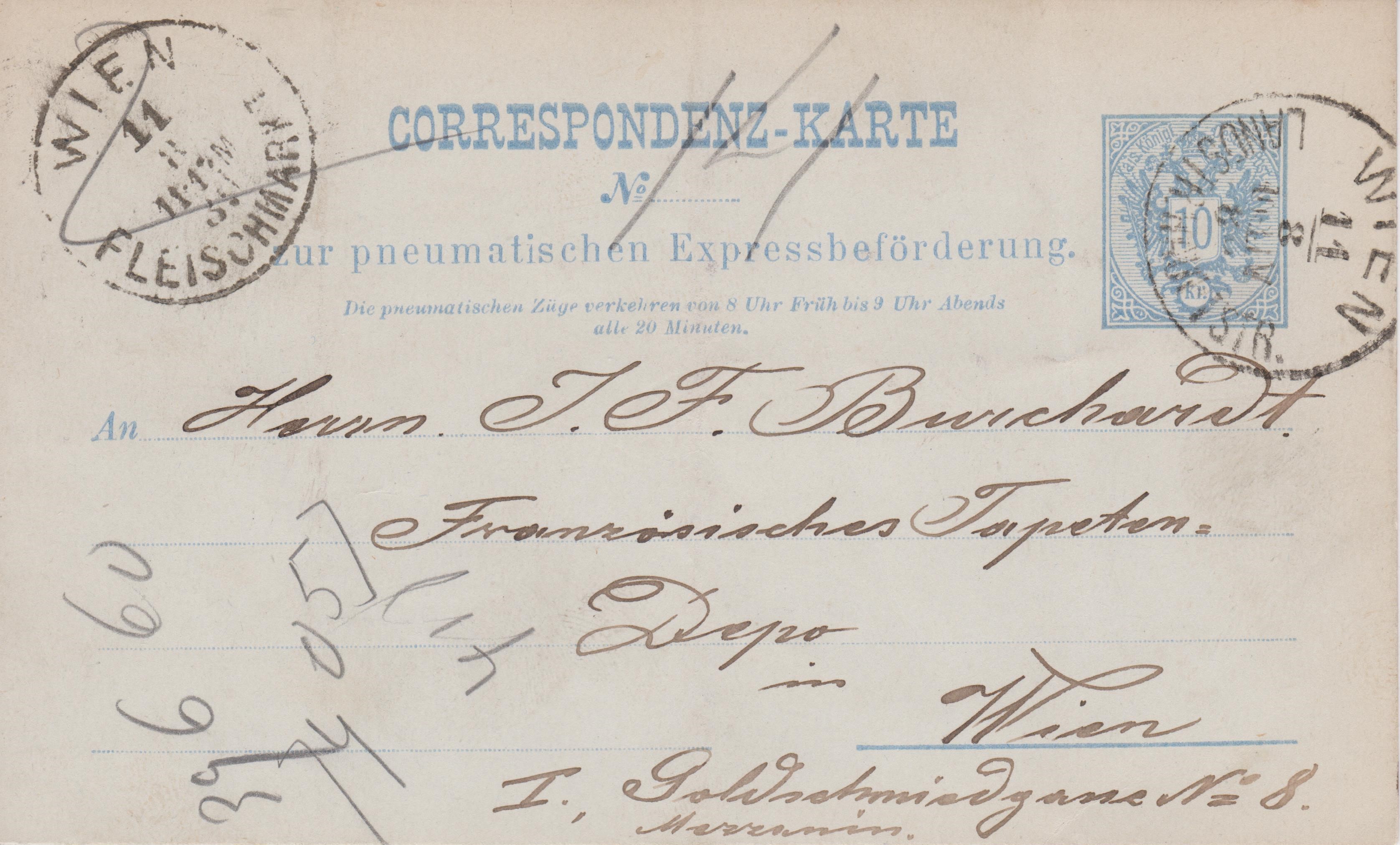"CORRESPONDENZ-KARTE zur pneumatischen Expressbeförderung":