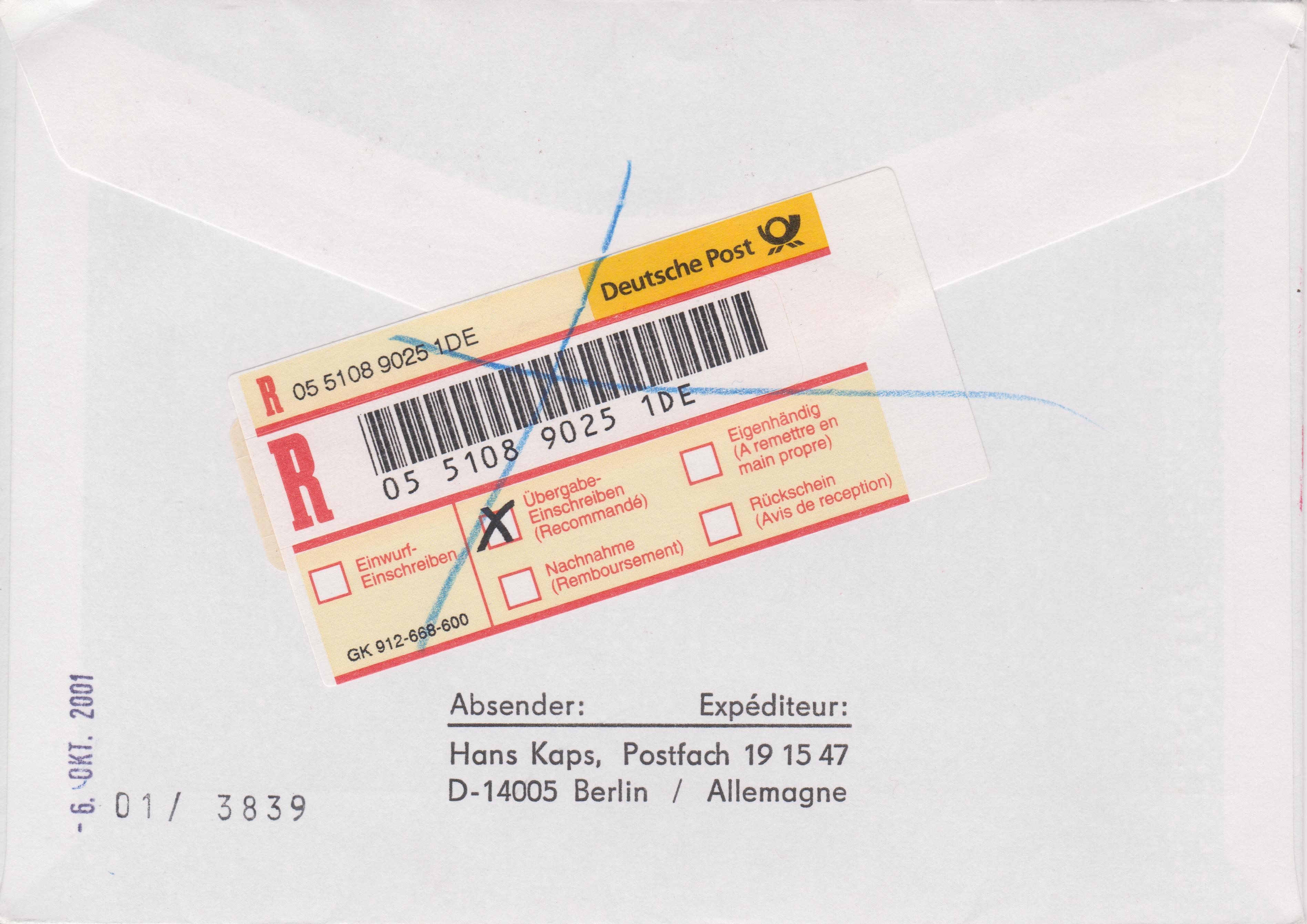 Hier der zu diesem Einlieferungsschein passende Brief: