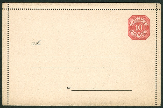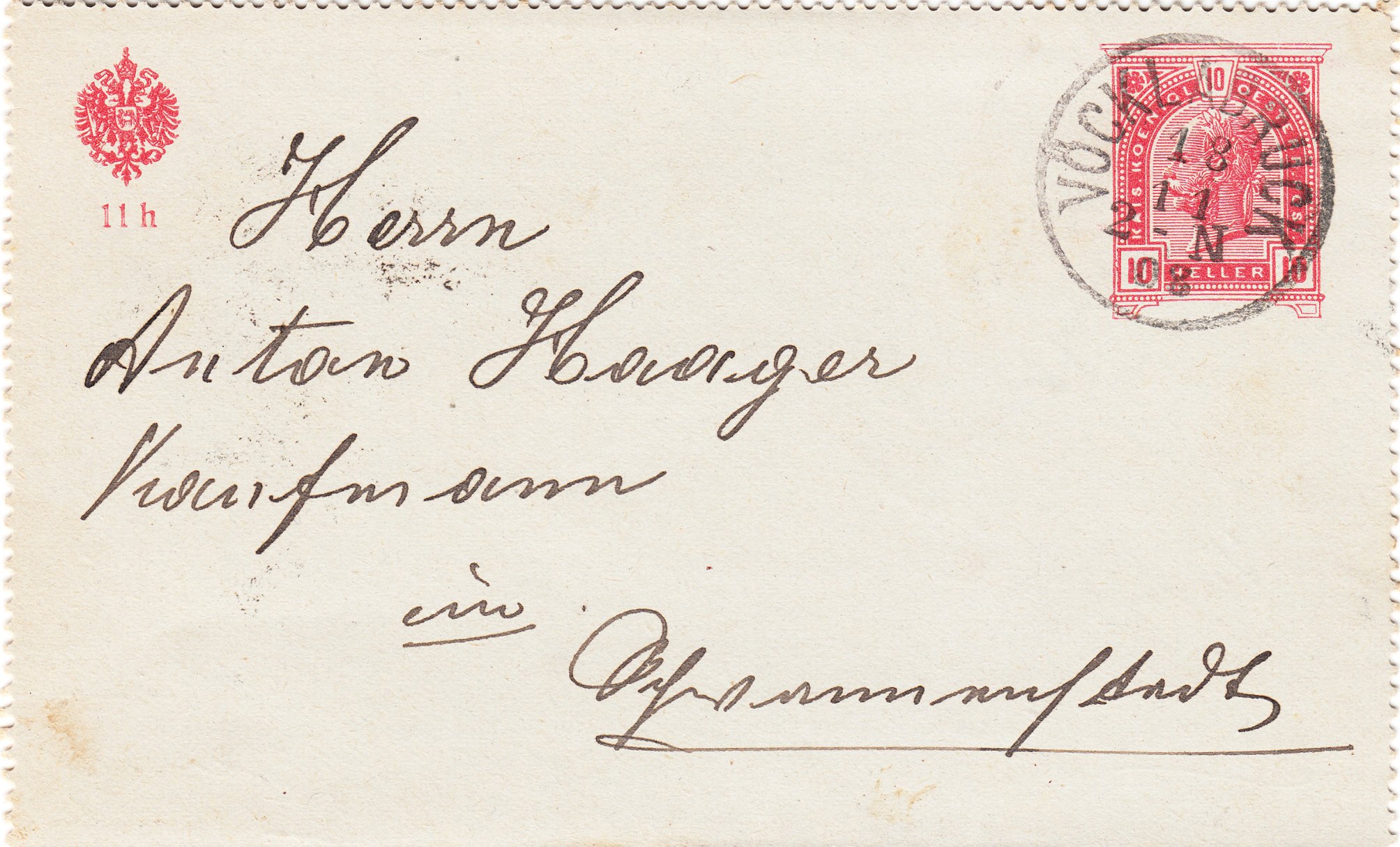 Dieses am 28.02.1919 von Vöcklabrunn nach Graz geschickte Exemplar eines Kartenbriefes trägt den Eindruck eines Postwertzeichens mit dem Porträt von König Karl I., das mit einem Aufdruck "Deutschösterreich" versehen wurde: