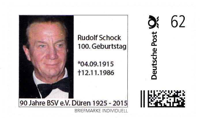 Marke individuell des BSV Düren zu den Jubiläen 90 Jahre BSV Düren und 100. Geburtstag Rudolf Schock.