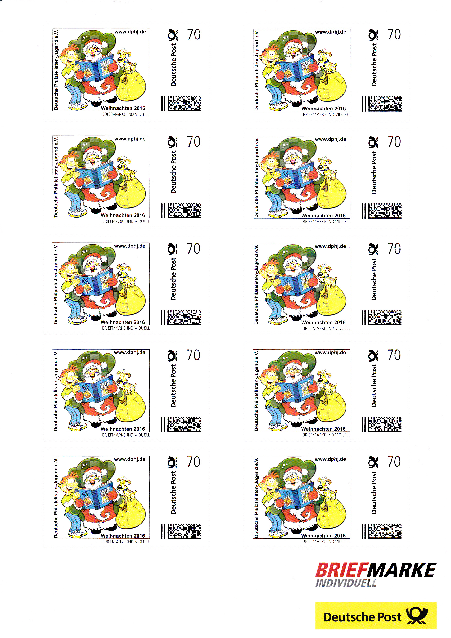 Die Weihnachtsmarken der DPhJ wurden in Zehnerbogen hergestellt. Hier ein kompletter Bogen: