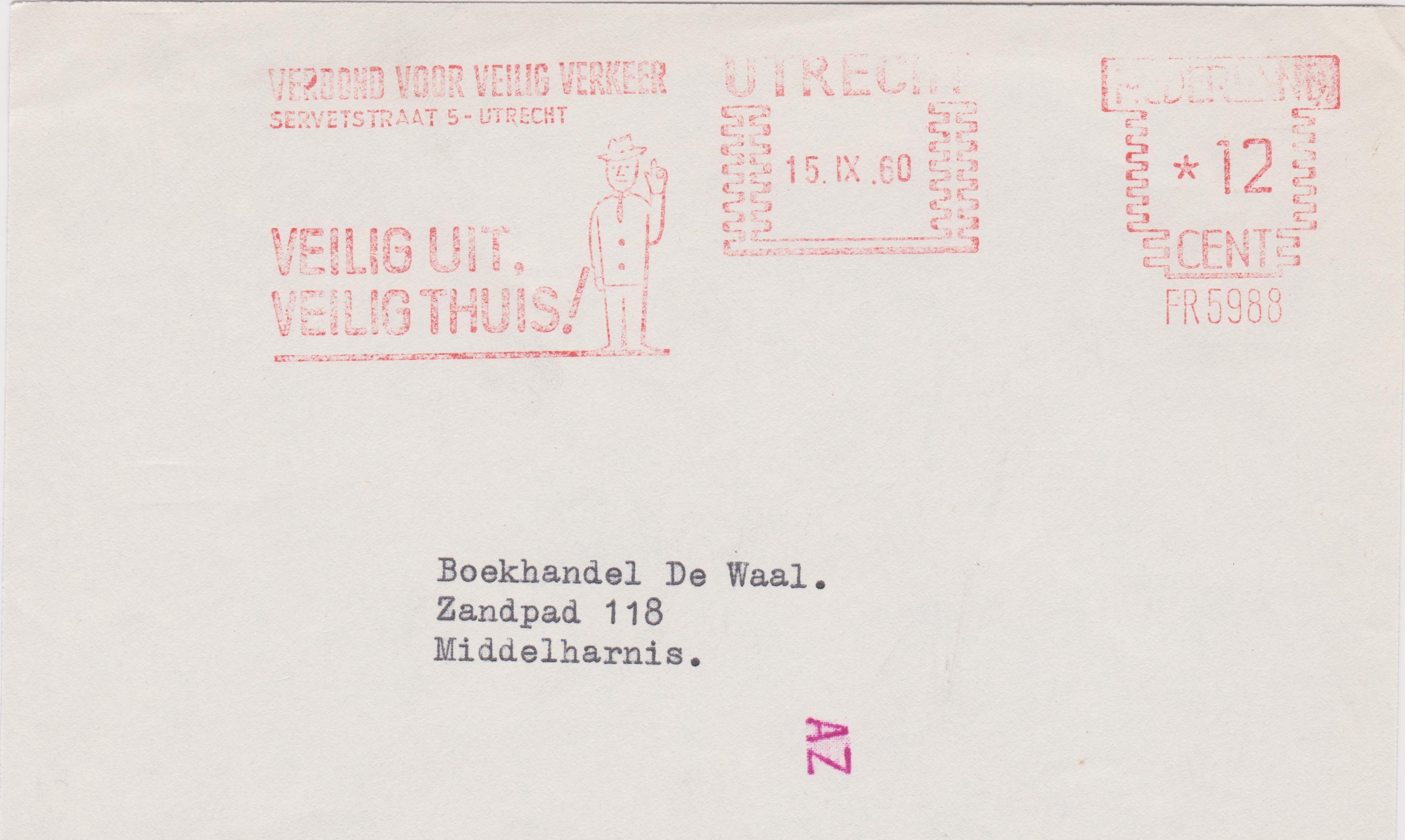 Dieser am 15.09.1960 in UTRECHT aufgegebene Beleg nach Middelharnis erhielt in Utrecht eine Ausgangscodierung "AZ" per Transorma: