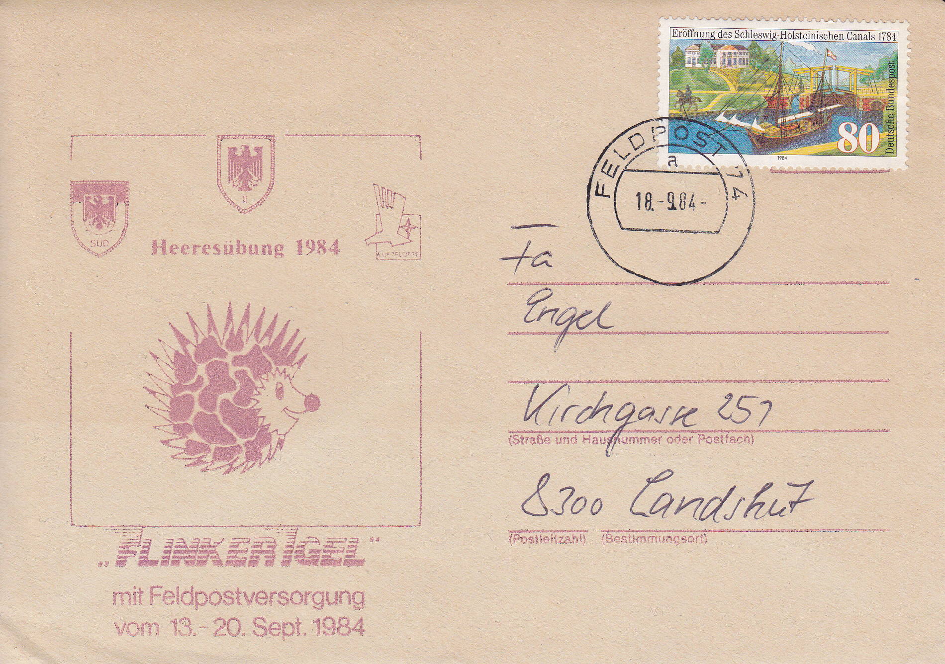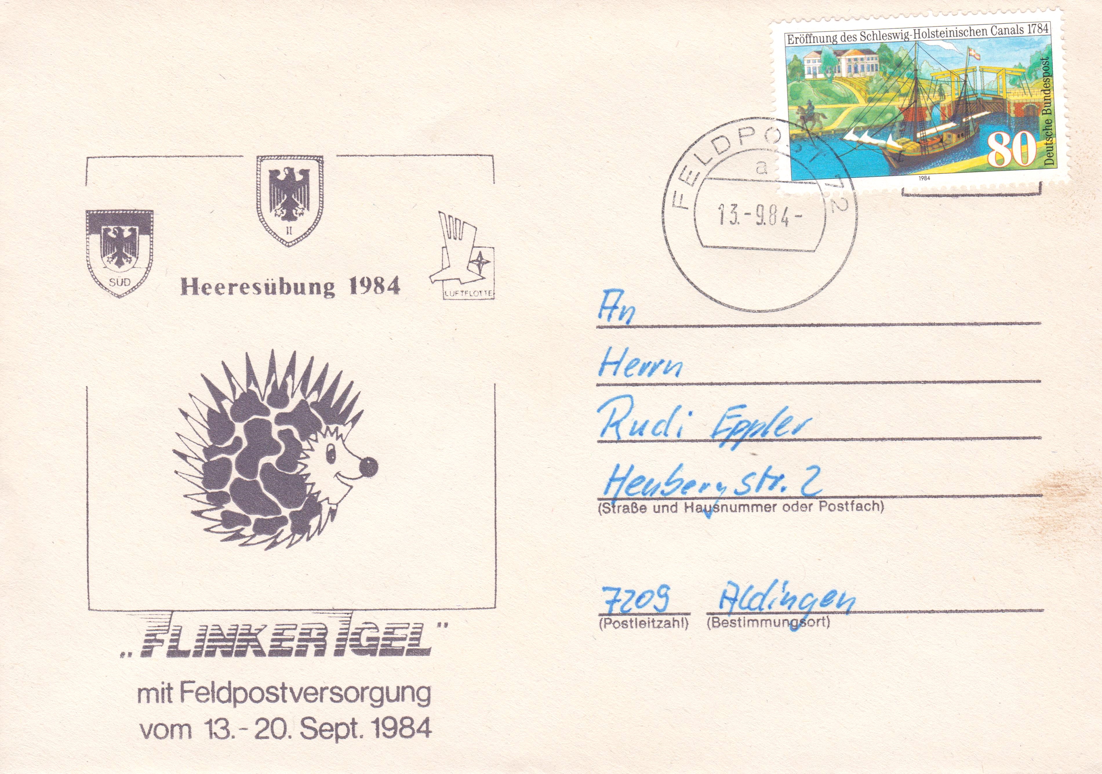 "FLINKER IGEL" war die vom 13.09.1984 bis 20.09.1984 durchgeführte Heeresübung mit Feldpostversorgung.