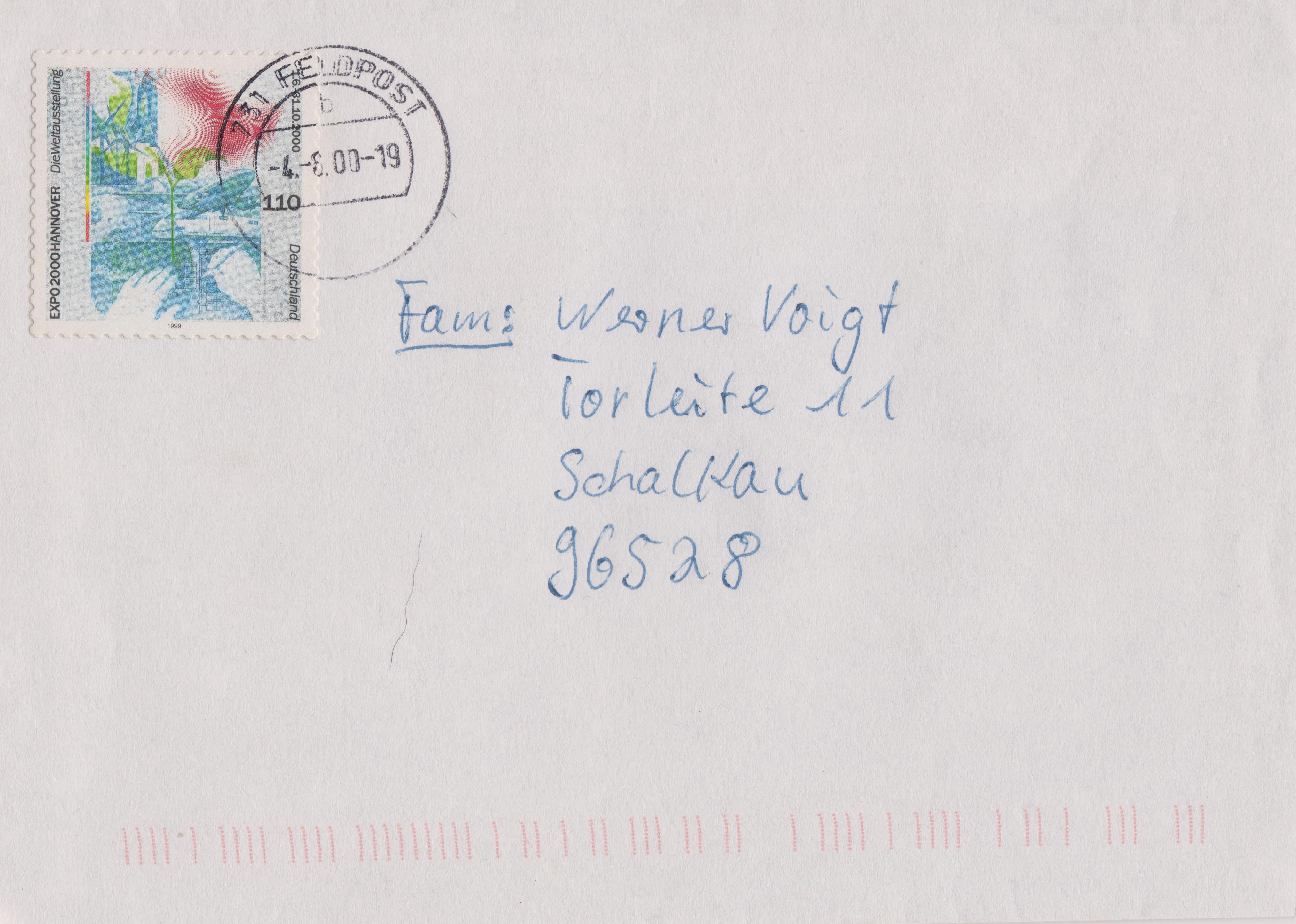 Dieser Brief wurde mit einer Einzelfrankaur der am 13.04.2999 erschienenen, selstklebenden Bund MiNr. 2112 am 04.08.2000 bei "731 FELDPOST b" (= Mostar) aufgegeben:
