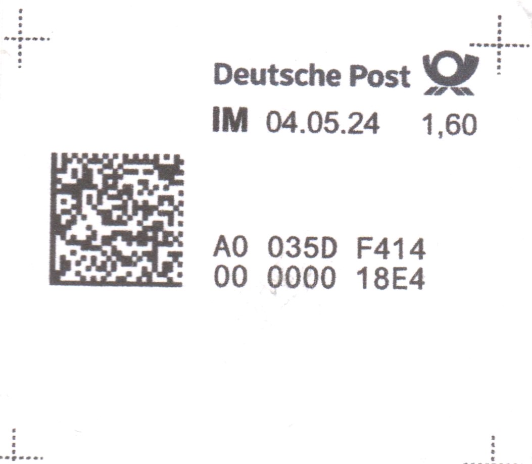 Das fehlende Postwertzeichen zu 0,30 € wurde am 29.04.2024 in einer Postfiliale "Fl" erworben und der Beleg wurde somit mit einigen Tagen Verspätung befördert!
