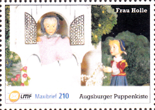 Für den Maxibrief diente diese Marke zu 210 Cent mit einer Szene aus "Frau Holle".