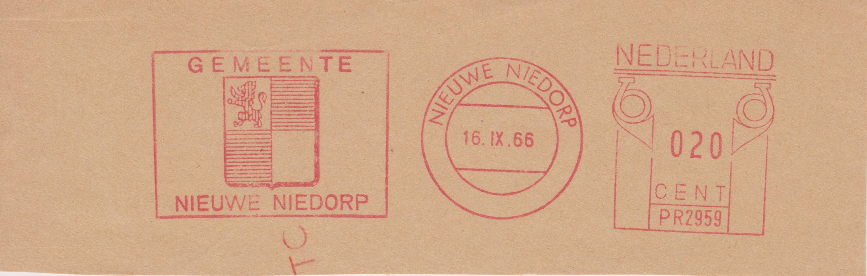 Ausschnitt mit einem Absenderfreistempel vom 16.09.1966 aus NIEUWE NIEDORF: