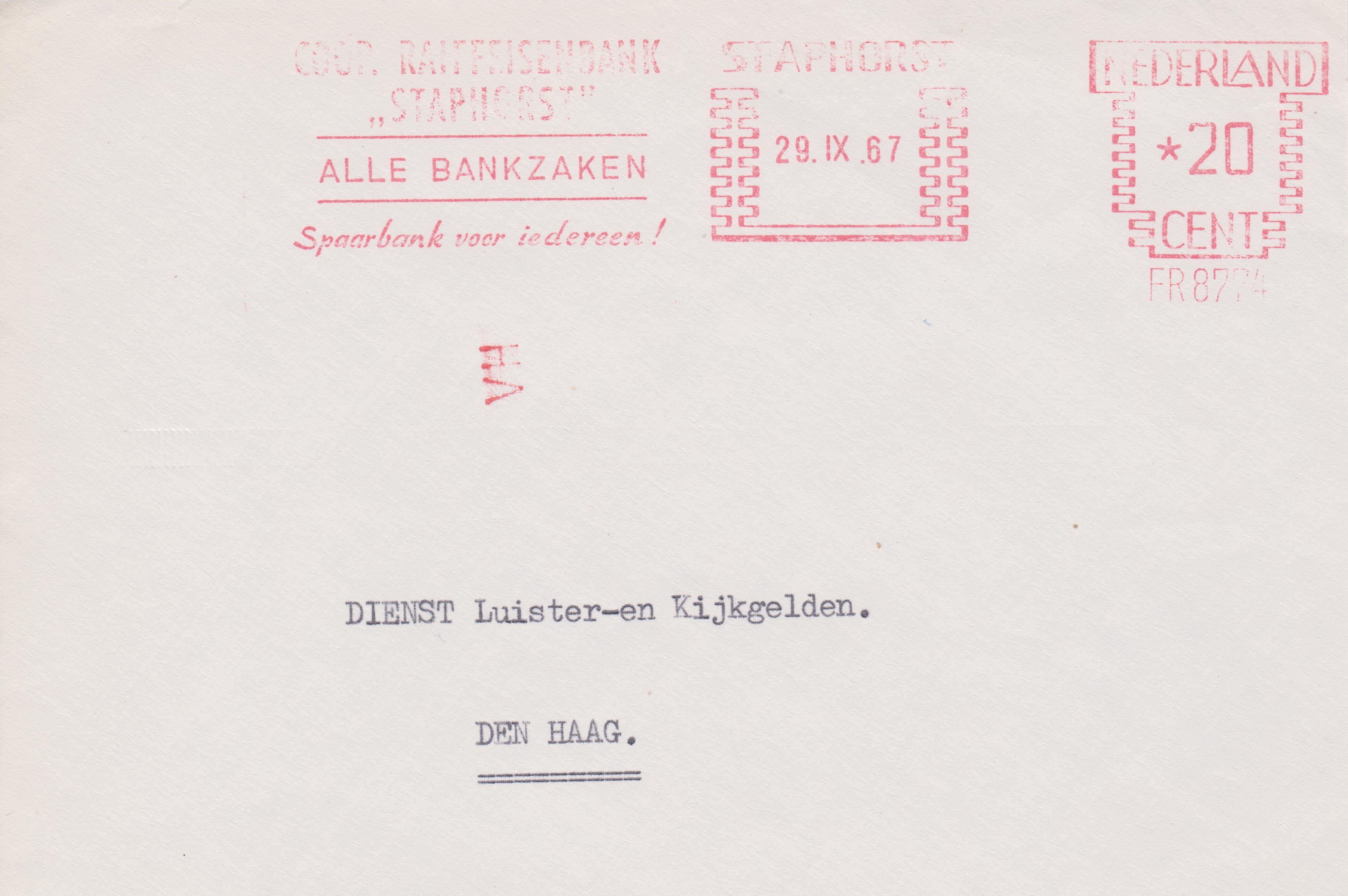 Ausschnitt aus einem Brief mit einem Absenderfreistempel vom 14.06.1965 aus UTRECHT nach Den Haag (= 's GRAVENHAGE):