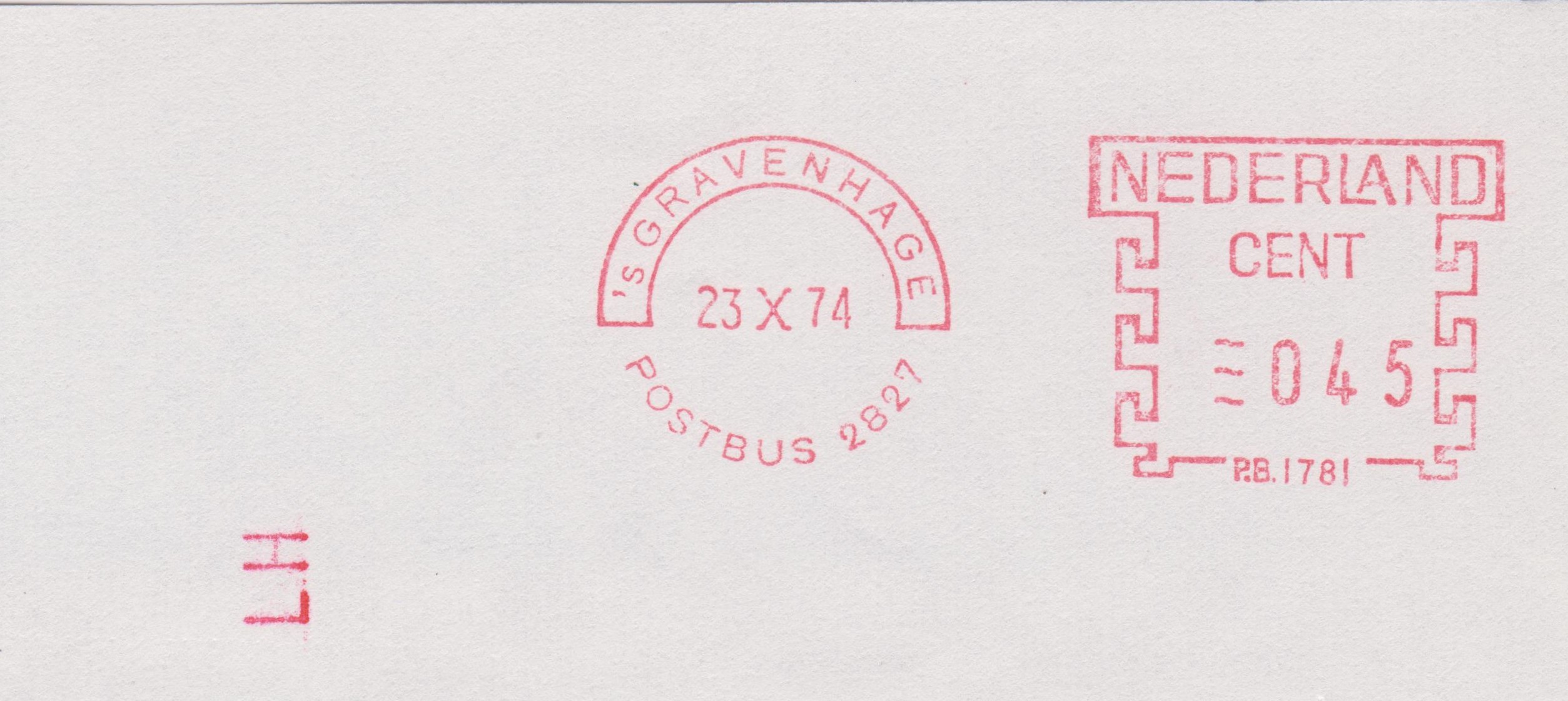 Ausschnitt aus einem Brief mit einem Freistempel vom 23.10.1974 aus 's GRAVENHAGE (= Den Haag):