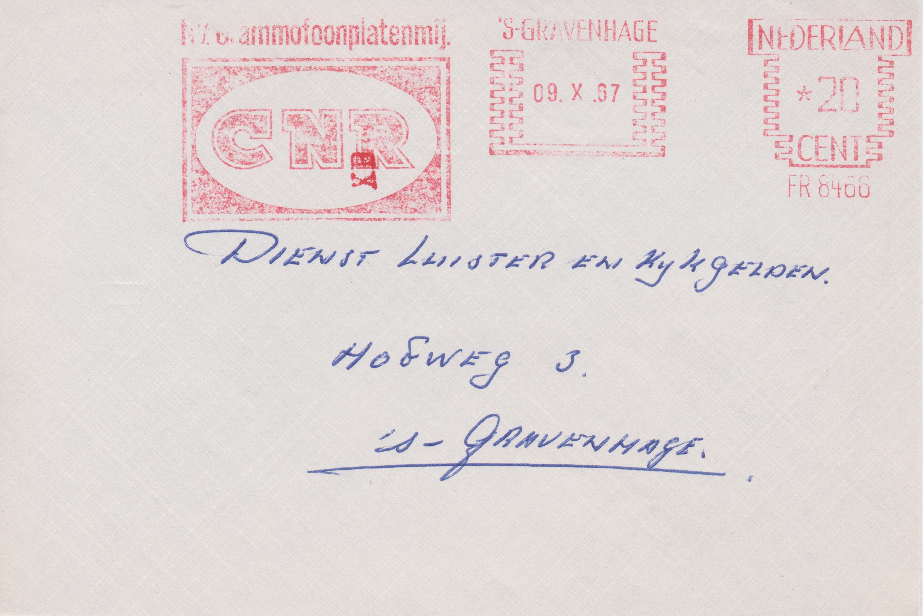 Ausschnitt aus einem Ortsbrief mit einem Absenderfreistempel vom 09.10.1967 aus 'S-GRAVENHAGE (= Den Haag):