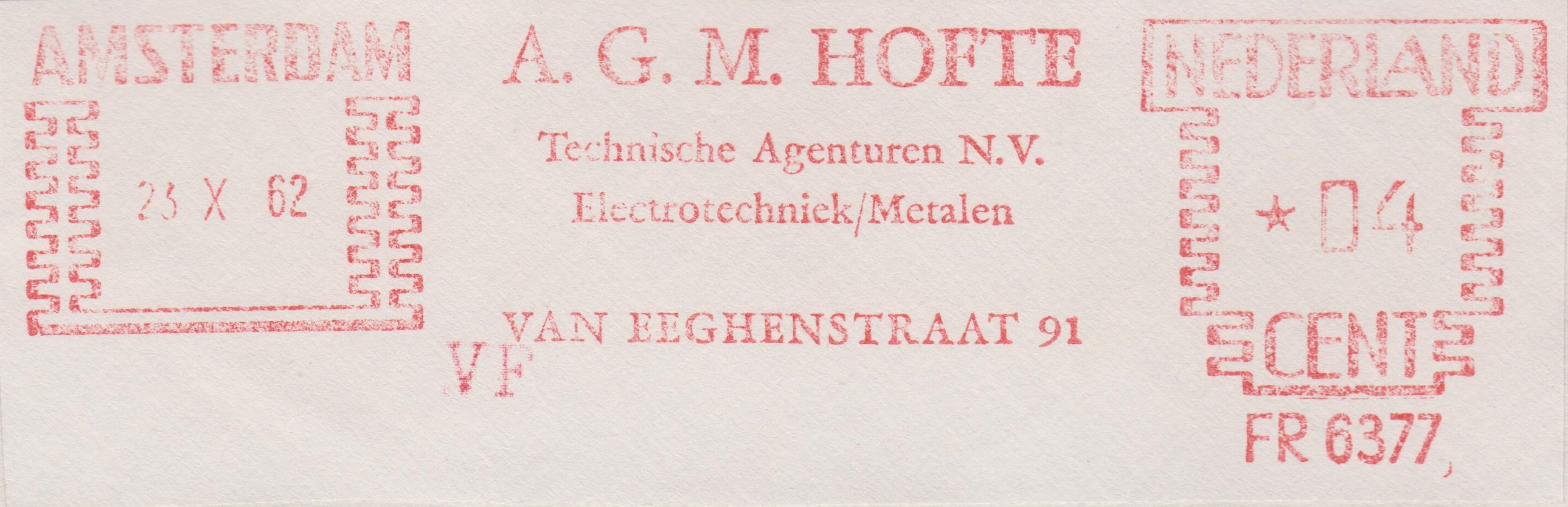 Ausschnitt aus einem Brief mit einem Absenderfreistempel vom 23.10.1962 aus AMSTERDAM: