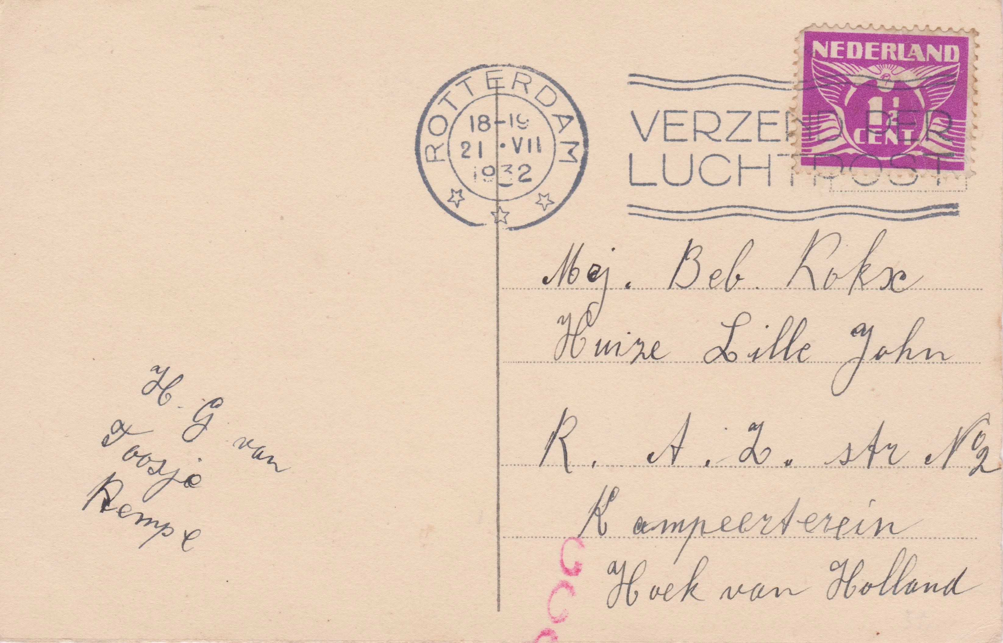 Ansichtskarte aus ROTTERDAM vom 21.07.1932, adressiert nach Hoek van Holland: