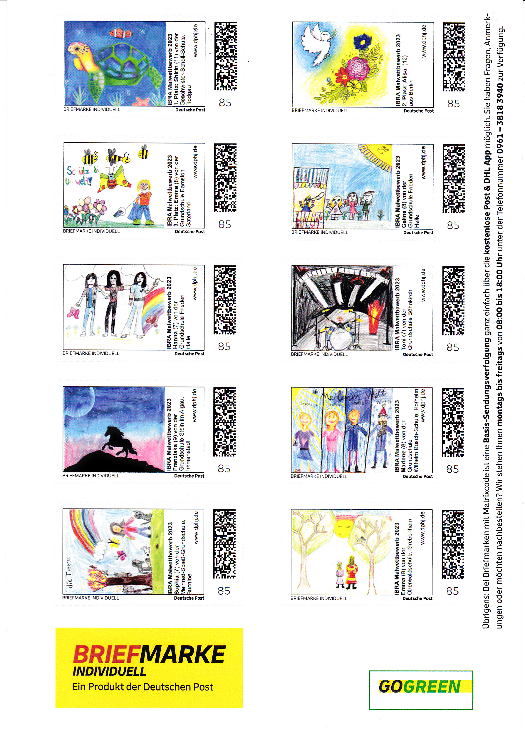 Die zehn Motive wurden in einem Markenbogen je einmal untergebracht. Die Auflage dieses Bogen beträgt 11 Exemplare. Hier ist der komplette Bogen zu sehen:
