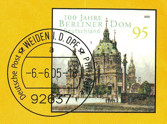 Die Vorausentwertung "-6.-6.05 - 18" und der Wertstempel (95 Cent) leicht vergrößert.