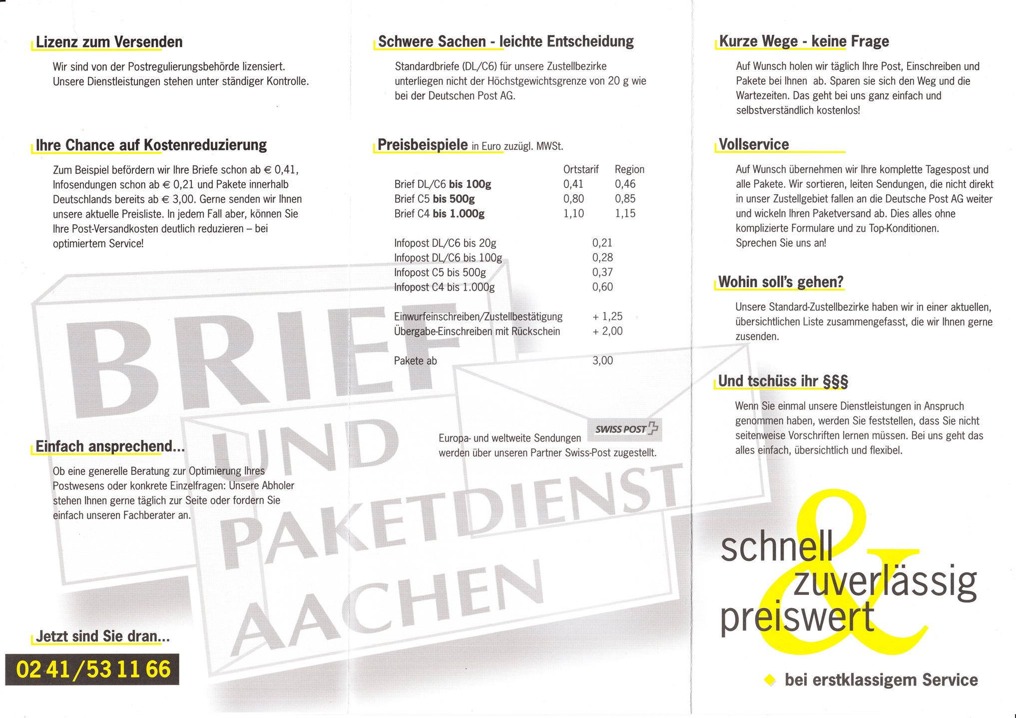 Hier zunächst der Werbeflyer dieses Privatpostanbieters: