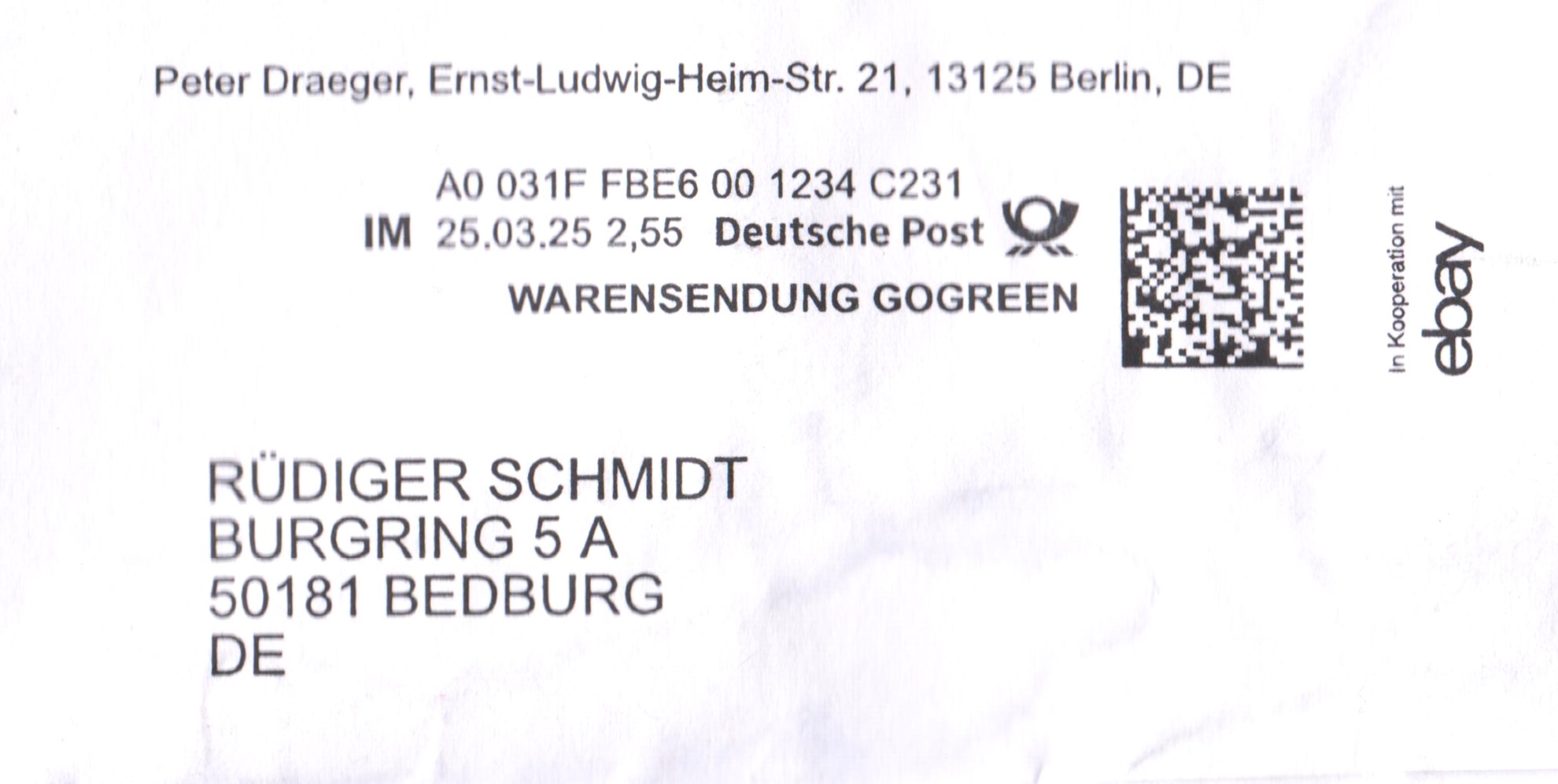 Die Warensendung wird von der Deutschen Post nur für den innerdeutschen Versand angeboten.