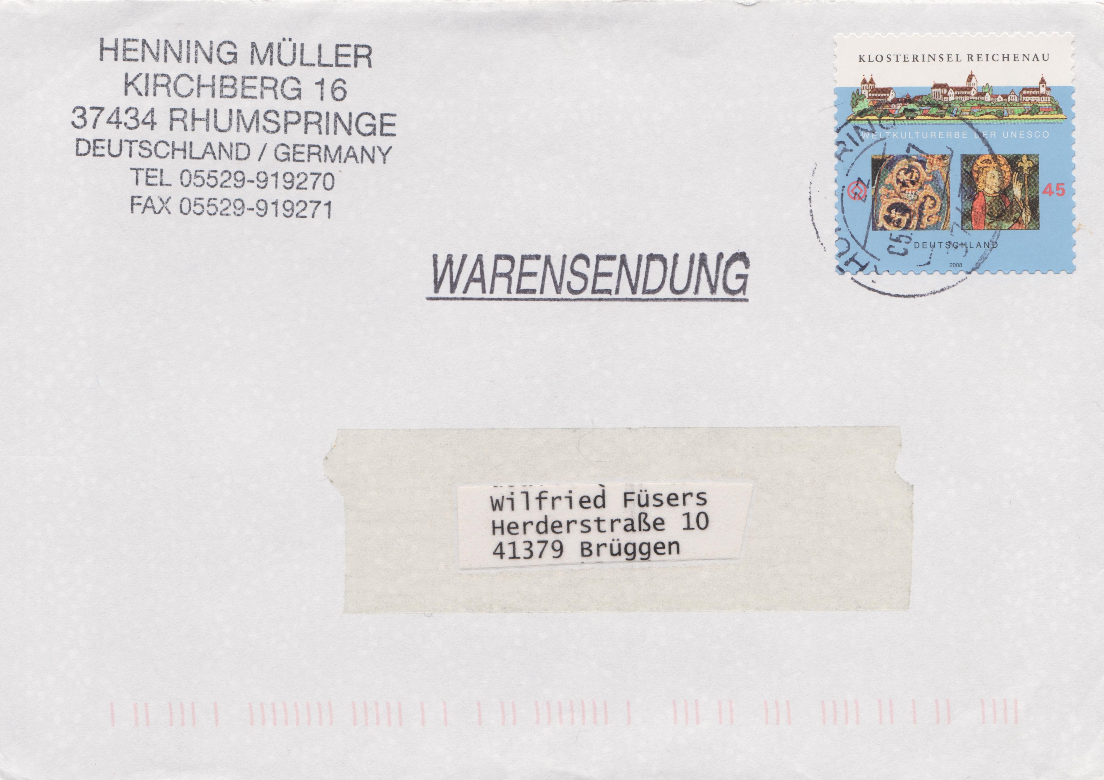 Die Kennzeichnung als "Warensendung" oberhalb der Anschrift ist erforderlich.