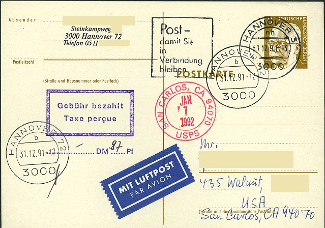 Je nach Gewicht, Entfernung und Versandart (z.B. Einschreiben Luftpost) konnte das Porto bis 200 DM betragen.