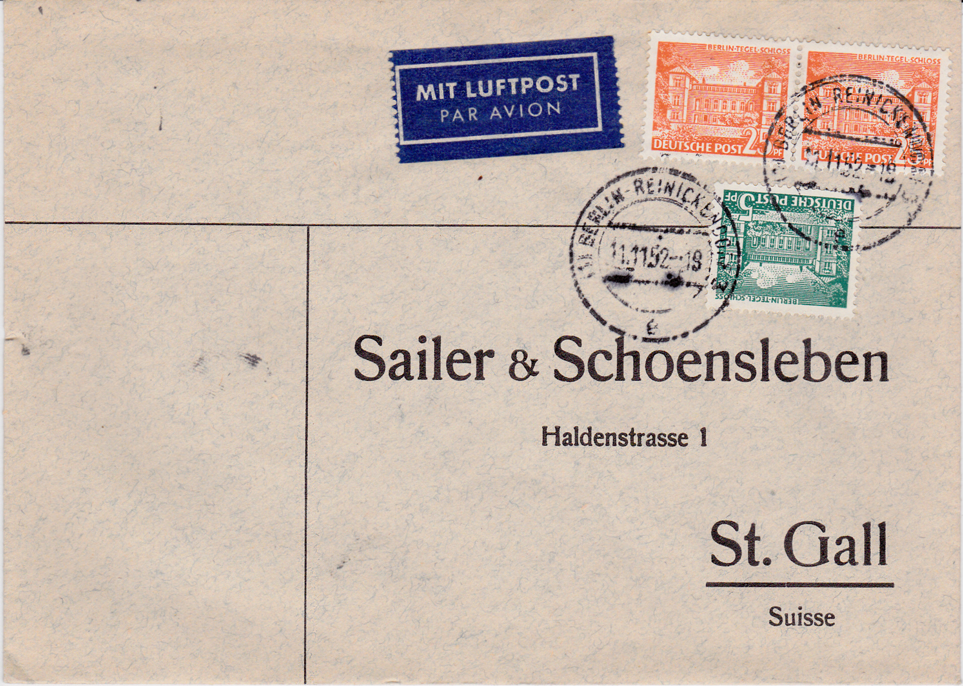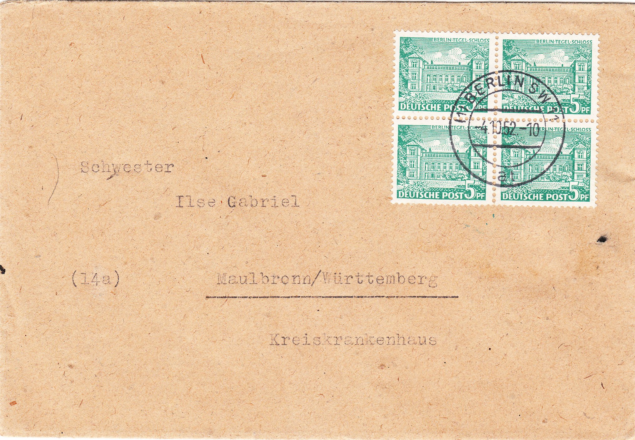 am 04.10.1952 als portogerechte Mehrfachfrankatur auf Fernbrief (20 Pf):