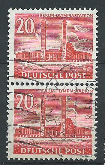 Auch von diesem Wert darf ein bedarfsgestempeltes senkrechtes Paar nicht fehlen. Es wurde mit einem Handrollstempel von Berlin SW 11 am 3.8.56 gestempelt.