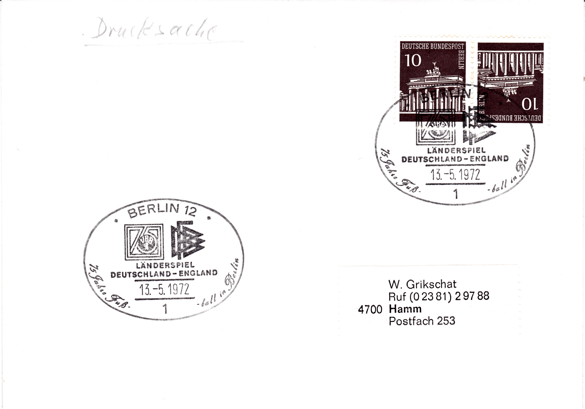 Kehrdruck der 10Pf-Marke (MiNr K 5) auf einer Drucksache mit Sonderstempel von Berlin nach Hamm.