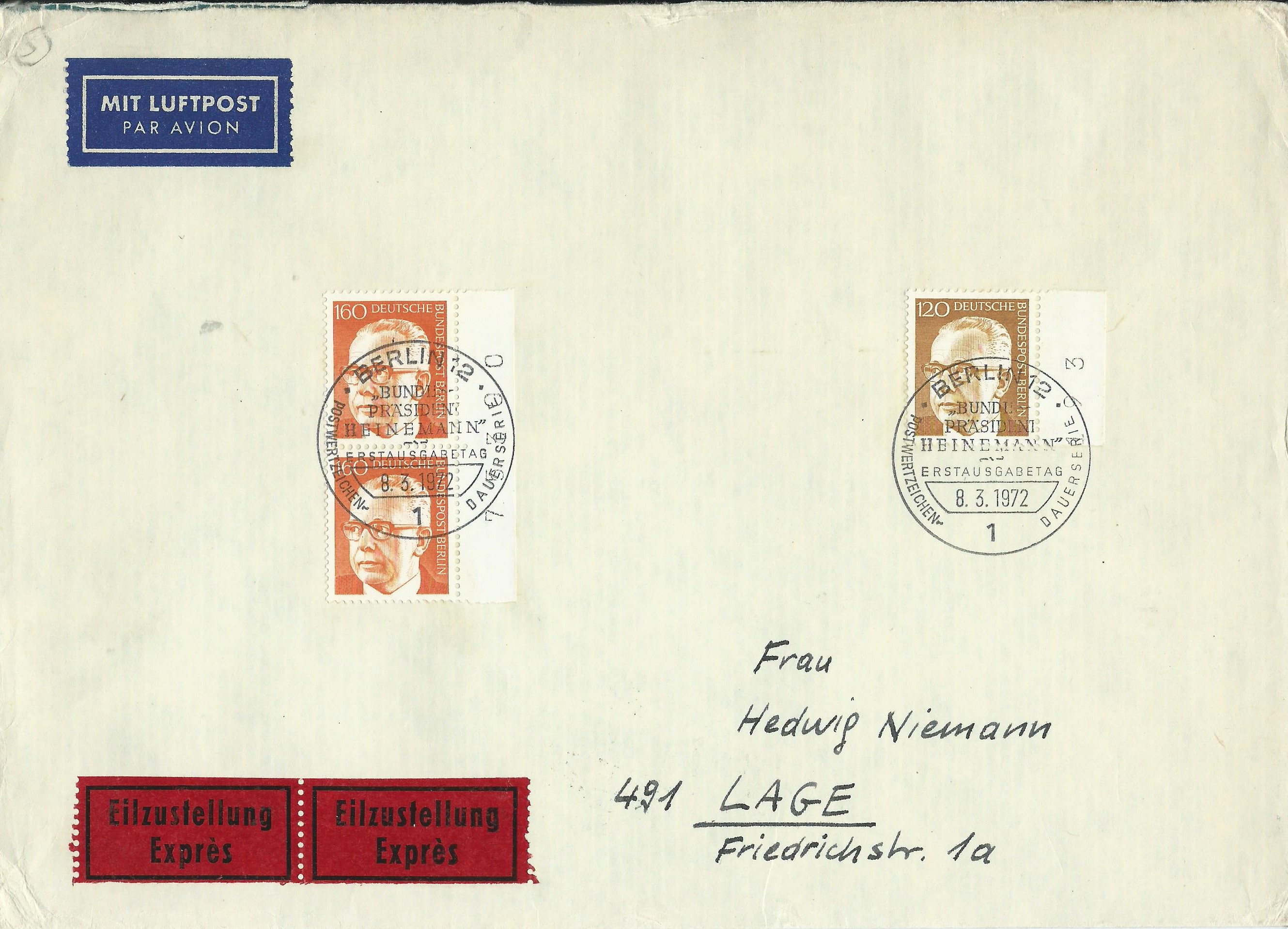 Der Satz Heinemann II besteht aus den Wertstufen zu 25, 60, 120 und 160 Pf und wird hier in der Übersicht gezeigt. Es handelt sich um die Michel-Nummern 393 bis 396.