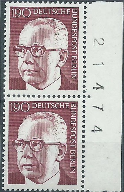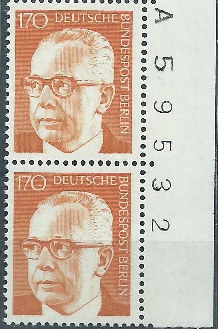 Ein Oberrandstück zu 130 Pf mit Reihenwertzähler 39,00, ebenfalls auf einem Luftpostbrief. Gestempelt wurde am 20.6.72 mit dem Ersttagssonderstempel Berlin.