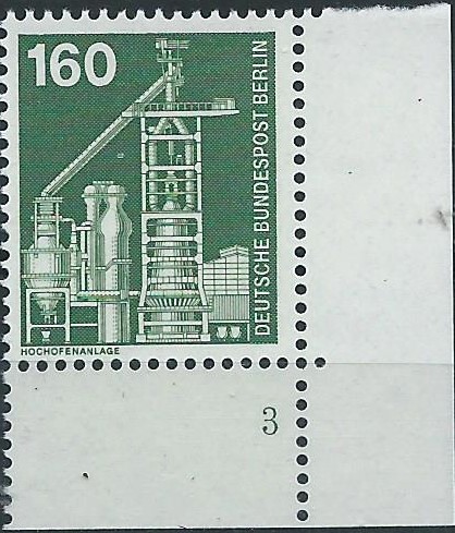 Der Wert Industrie und Technik zu 160 Pf als postfrisches rechtes Eckrandstück mit Formnummer 3: