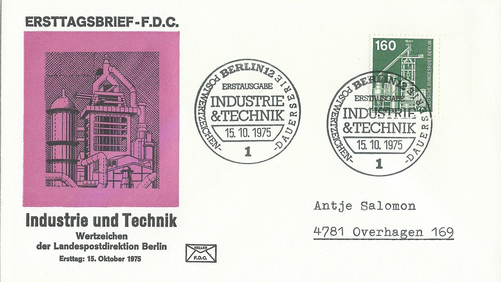 den hier gezeigten Beleg habe ich eigentlich nur mitgenommen, weil er neben weiteren Marken eine schöne linke untere Bogenecke der Industrie und Technik-Marke zu 160 Pf als Frankatur aufweisen kann. Noch dazu ein schöner Vollstempel von Berlin vom 2.5.80! Diese Markenausgabe hat ja meist Probleme bereitet, schöne Bedarfsstempel hervorzubringen, da die Markenfarbe die Stempelfarbe schlecht aufgenommen hat. Und hier kann man ja nun wirklich nicht meckern, sauberer Berlin-Bedarfsstempel auf Berlinausgabe, Sammlerherz, was willst Du mehr? Und das für einen Euro…