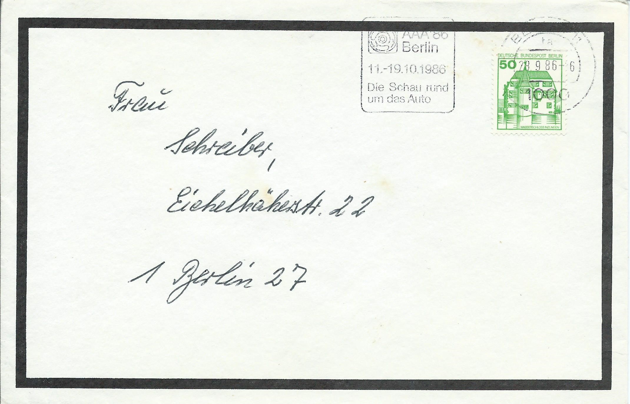 Und als zweites ein Einschreiben als Ersttagsbrief mit dem passenden Ersttagssonderstempel Berlin vom 14.2.80. Frankiert wurde mit einer Einzelmarke und einem 4-er-Block vom linken Bogenrand mit Bogenzählnummer. Mit 2,50 DM ist er leider nicht portorichtig frankiert, ein normaler Einschreibbrief kostete zu der Zeit 2,10 DM.