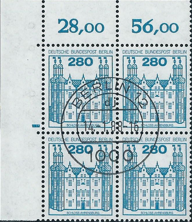 Der Wert zu 280 Pf aus der linken unteren Bogenecke mit Tagesstempel Berlin 12 vom 6.1.84: