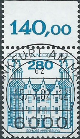 der Wert zu 280 Pf vom Oberrand mit Reihenwertzähler 140,00 und Stempel Frankfurt am Main vom 15.7.82: