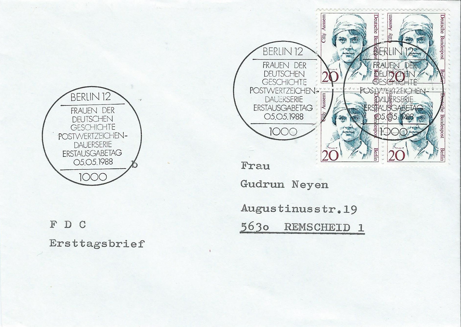 Foren-Übersicht Fragen und Diskussion Deutschland Deutschland ab 1945 Berlin Dauerserien Frauen der deutschen Geschichte (IV) Ersttagsbriefe