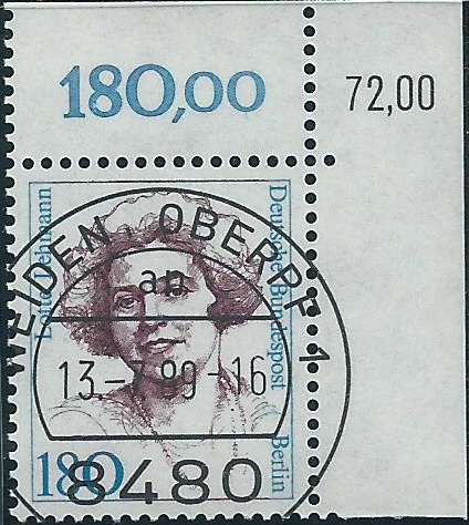 hier habe ich einen Beleg mit einer Frankatur der Marken der Frauenserie Berlin zu 170 und 180 Pf jeweils vom Oberrand mit Reihenwertzähler 119,00 und 126,00. Er ist korrekt mit 3,50 DM für ein Einschreiben frankiert. Gestempelt wurde er am 15.2.91 in München