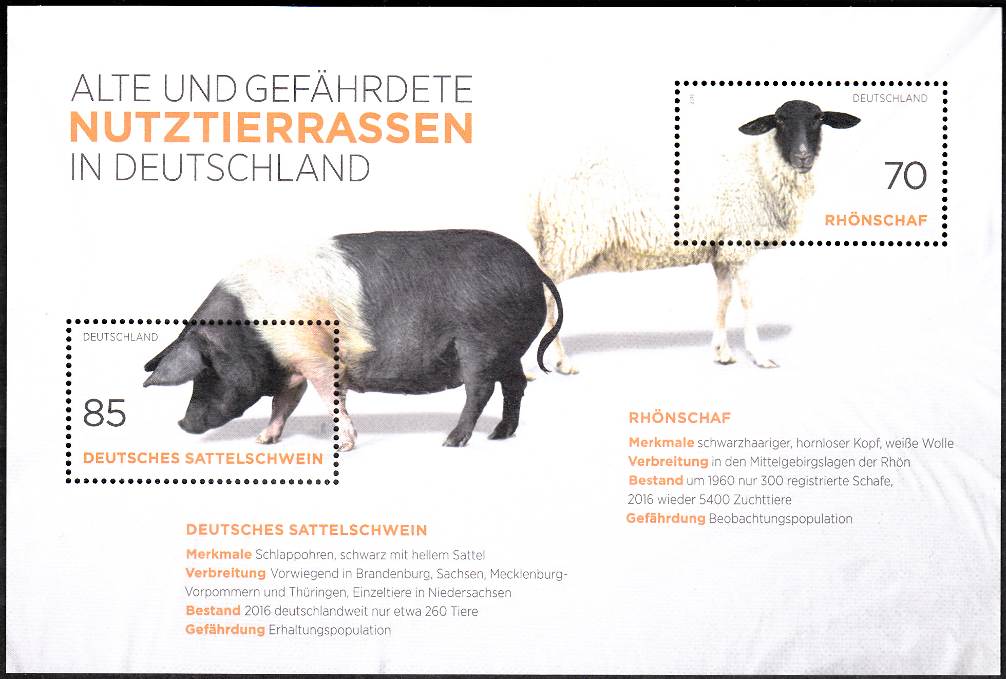 Diese Marke erschien in dem Block " Alte und gefährdete Nutztierrassen in Deutschland" (MiNr Block 81). Dort wird auch das ganze Schwein gezeigt.
