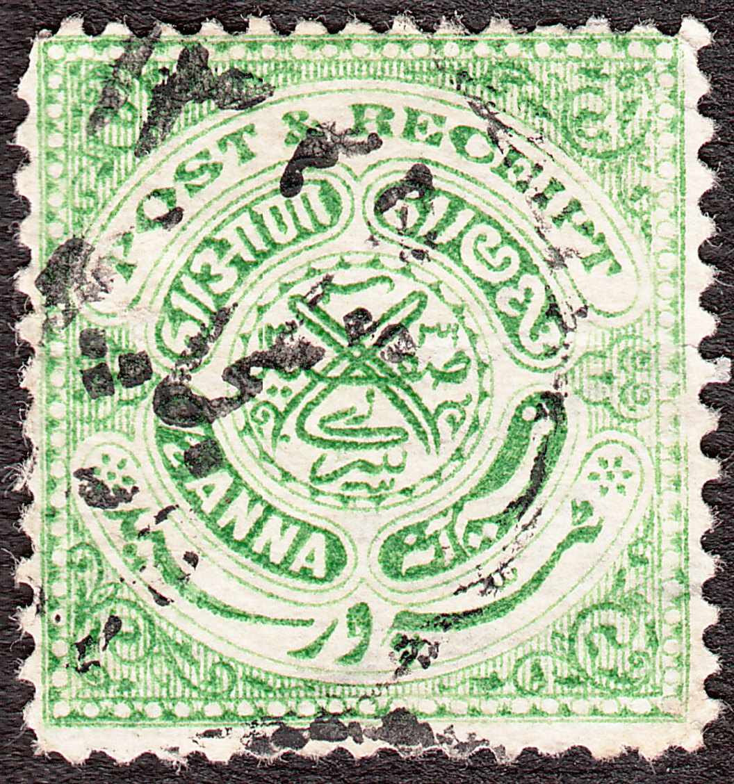 Foren-Übersicht Fragen und Diskussion Übersee Asien Indien Vertragsstaaten und Feudalstaaten Hyderabad MiNr. 23 - 1/2 Anna grün "POST & RECEIPT"