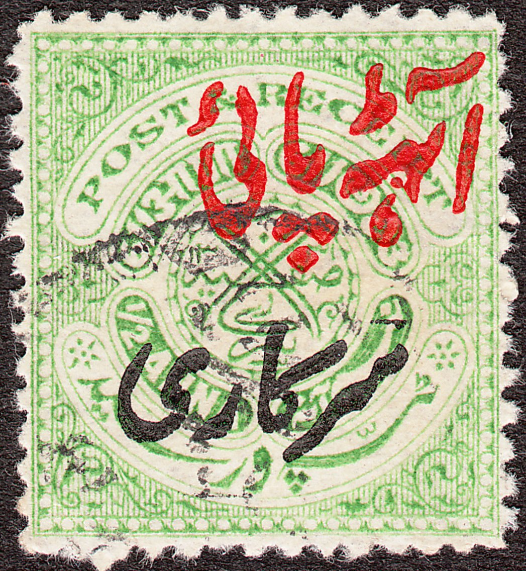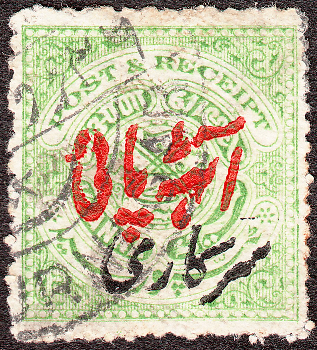 Dabei handelt es sich um Freimarken von Hyderabad mit Aufdruck "Sarkari" = Dienst in Urdu-Schrift in drei verschiedenen Aufdrucktypen.