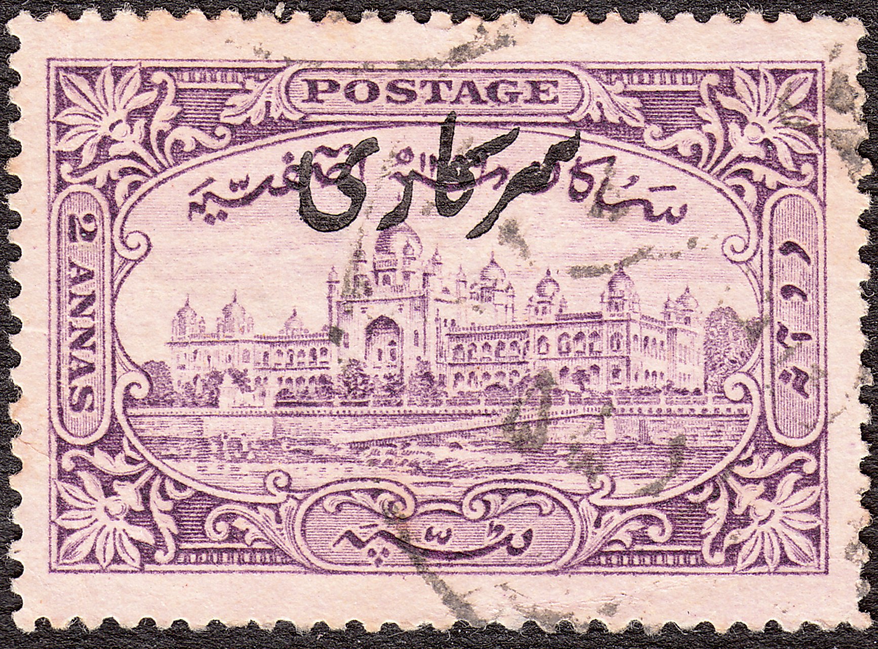 Von 1873 bis 1950 wurden in Hyderabad insgesamt 46 verschiedene Dienstmarken ausgegeben. Dabei handelt es sich um Freimarken von Hyderabad mit Aufdruck "Sarkari" = Dienst in Urdu-Schrift in drei verschiedenen Aufdrucktypen.