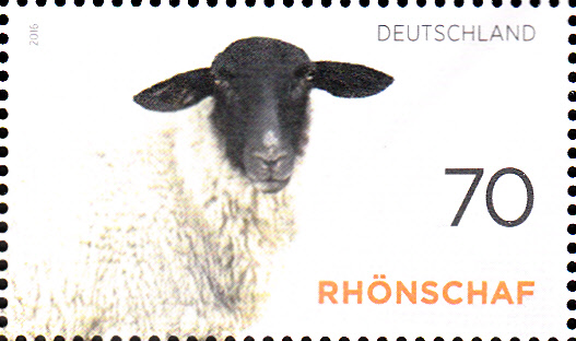 Auf dieser Marke der Deutschen Post AG (MiNr 3261) ist ein Rhönschaf zu sehen.