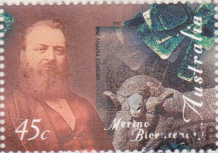 In einer Ausgabe "200 Jahre Merinoschafe in Australien" ist in Australien diese Marke (MiNr 1653) mit dem Porträt von George Peppin jr. (1827 bis 1876; Gründer der 1. Merinozucht) und einem Merinoschaf erschienen.